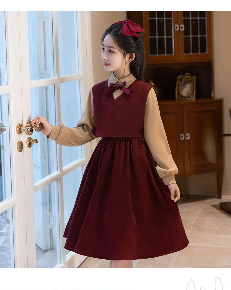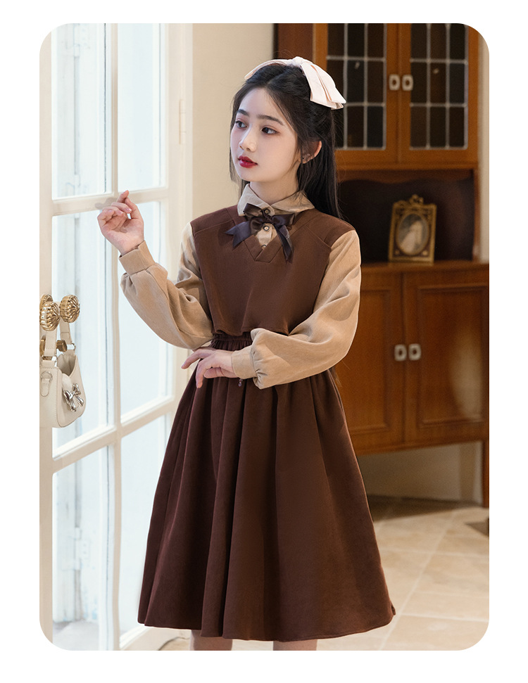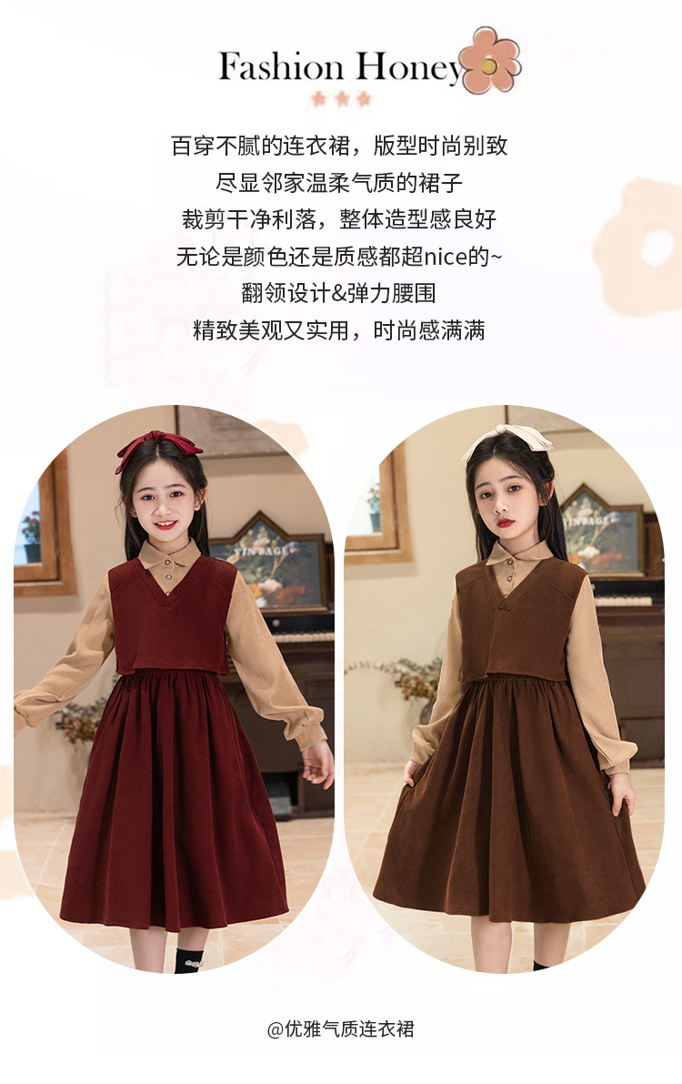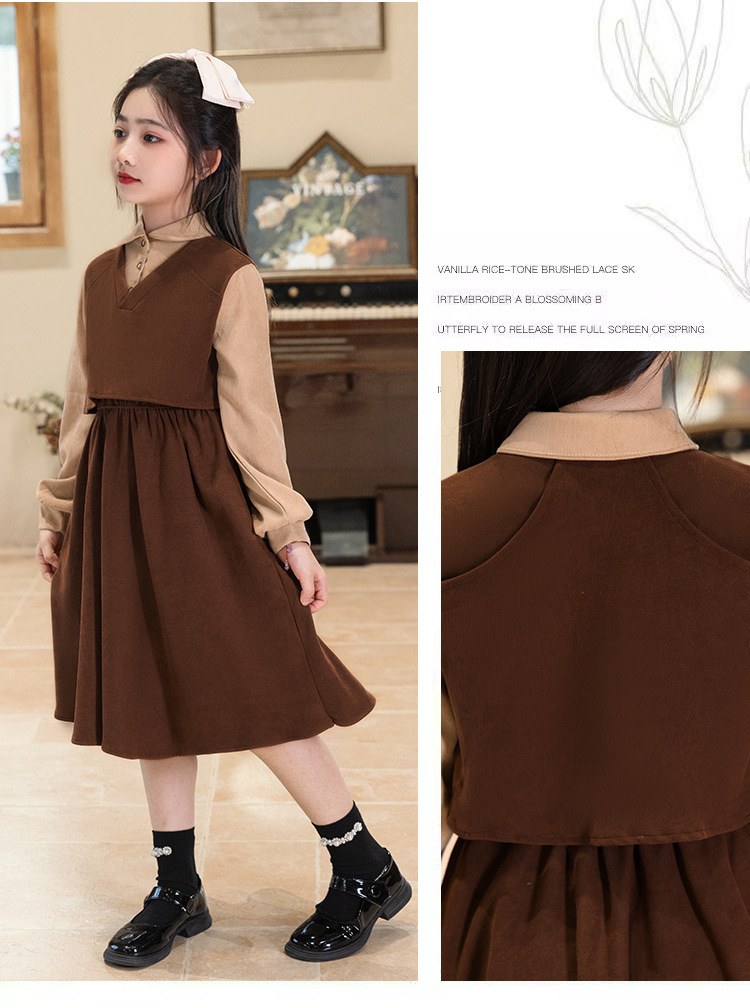 Cuhk 소녀 봄과 가을 새로운 유행 대학 스타일 POLO 칼라 가짜 투피스 원피스 캐주얼 가을 원피스