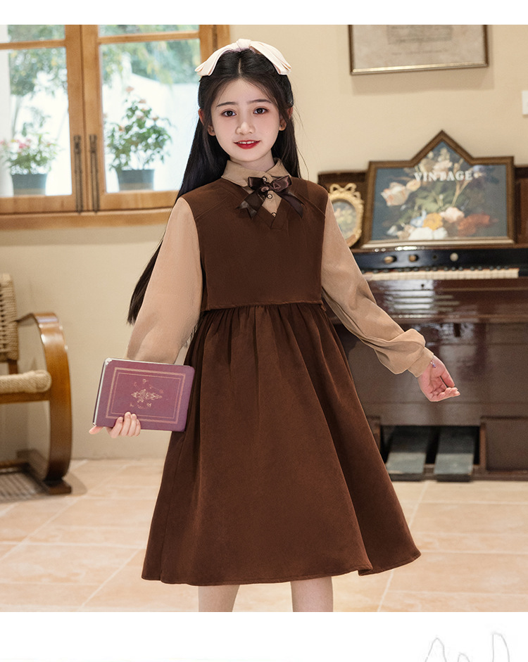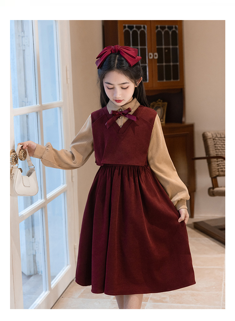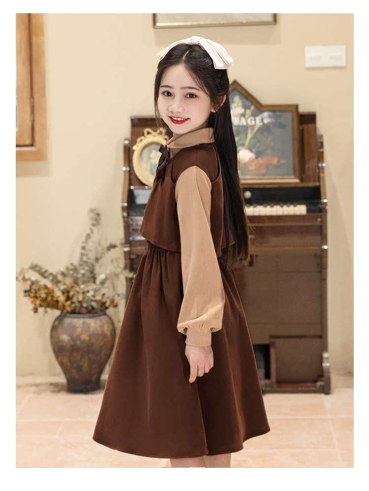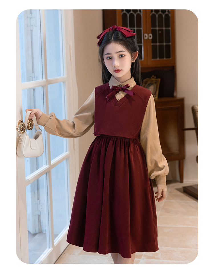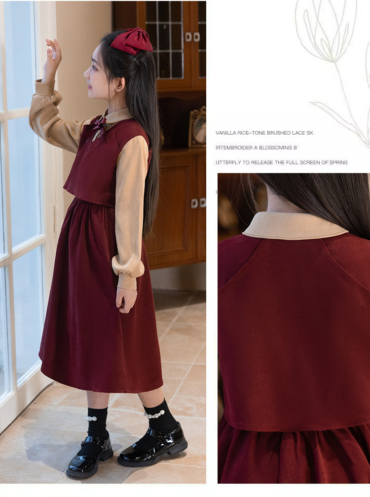 Cuhk 소녀 봄과 가을 새로운 유행 대학 스타일 POLO 칼라 가짜 투피스 원피스 캐주얼 가을 원피스