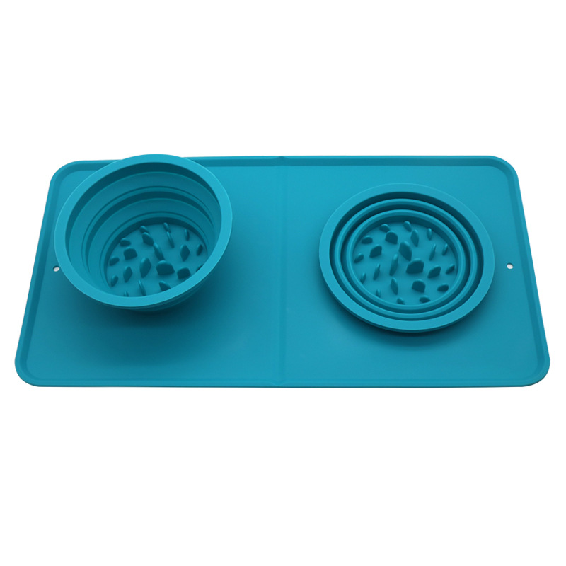 실리콘 애완 동물 그릇 개 그릇 개 그릇 안티 팁 애완 동물 그릇 세트 개 그릇 더블 그릇 2 사용 휴대용 고양이 먹이 그릇 매트