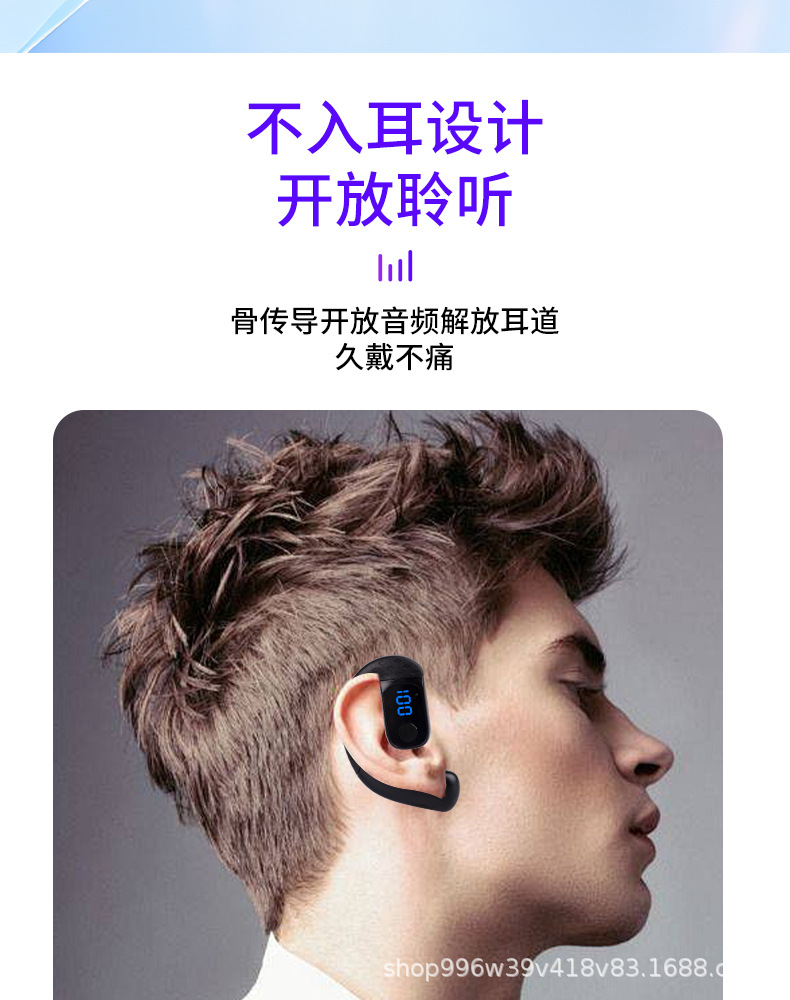 Z10 회전식 디지털 디스플레이 블루투스 이어폰 골전도 좌우 귀 착용 무선 장시간 사용 이어클립형 블루투스 5.4스토어 가기