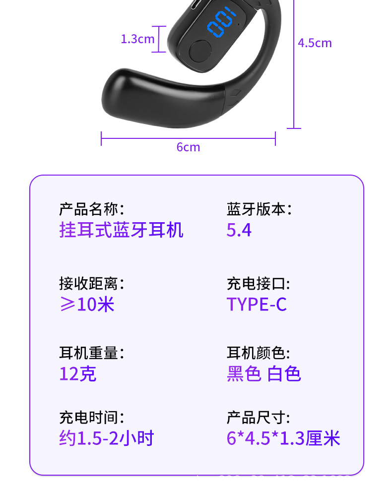 Z10 회전식 디지털 디스플레이 블루투스 이어폰 골전도 좌우 귀 착용 무선 장시간 사용 이어클립형 블루투스 5.4