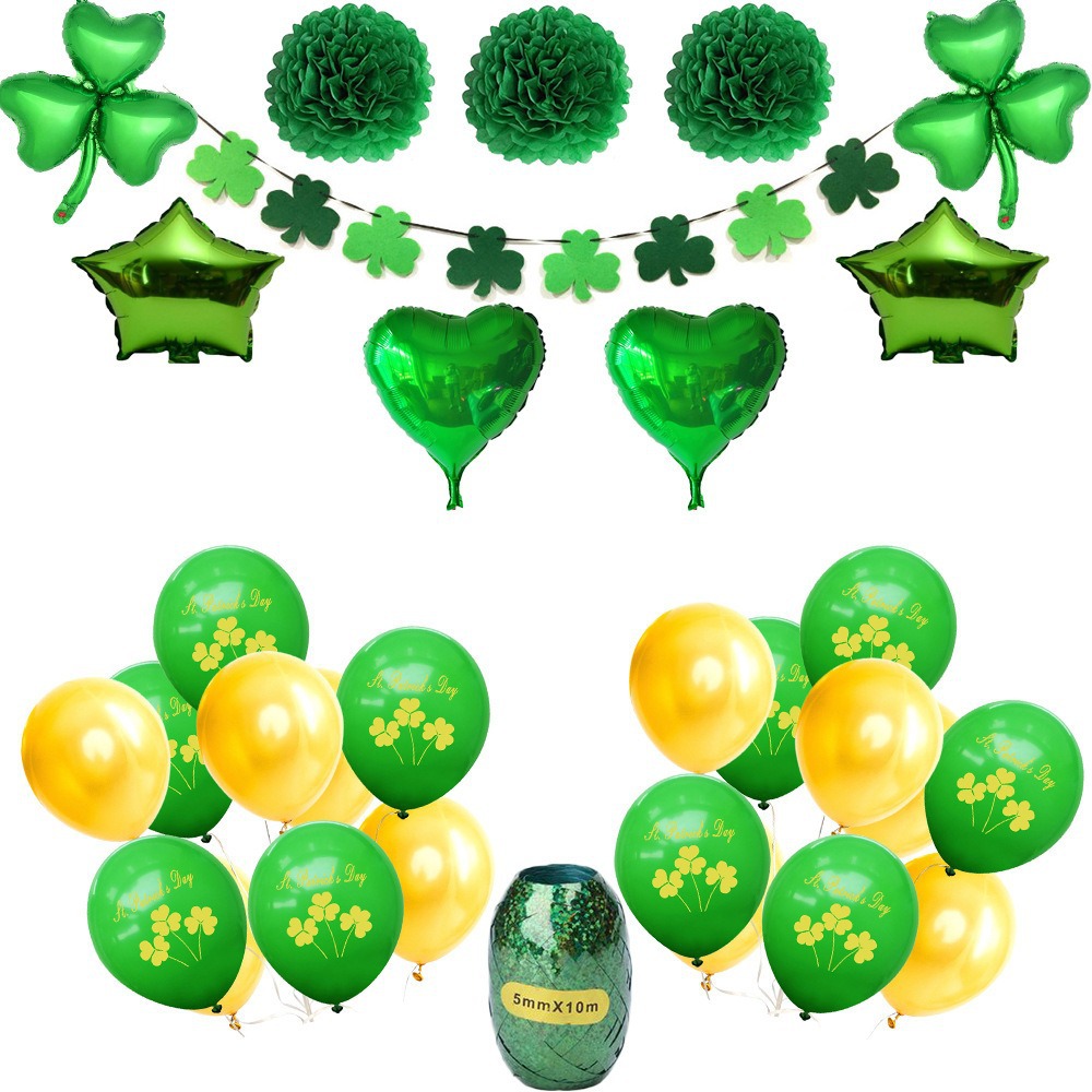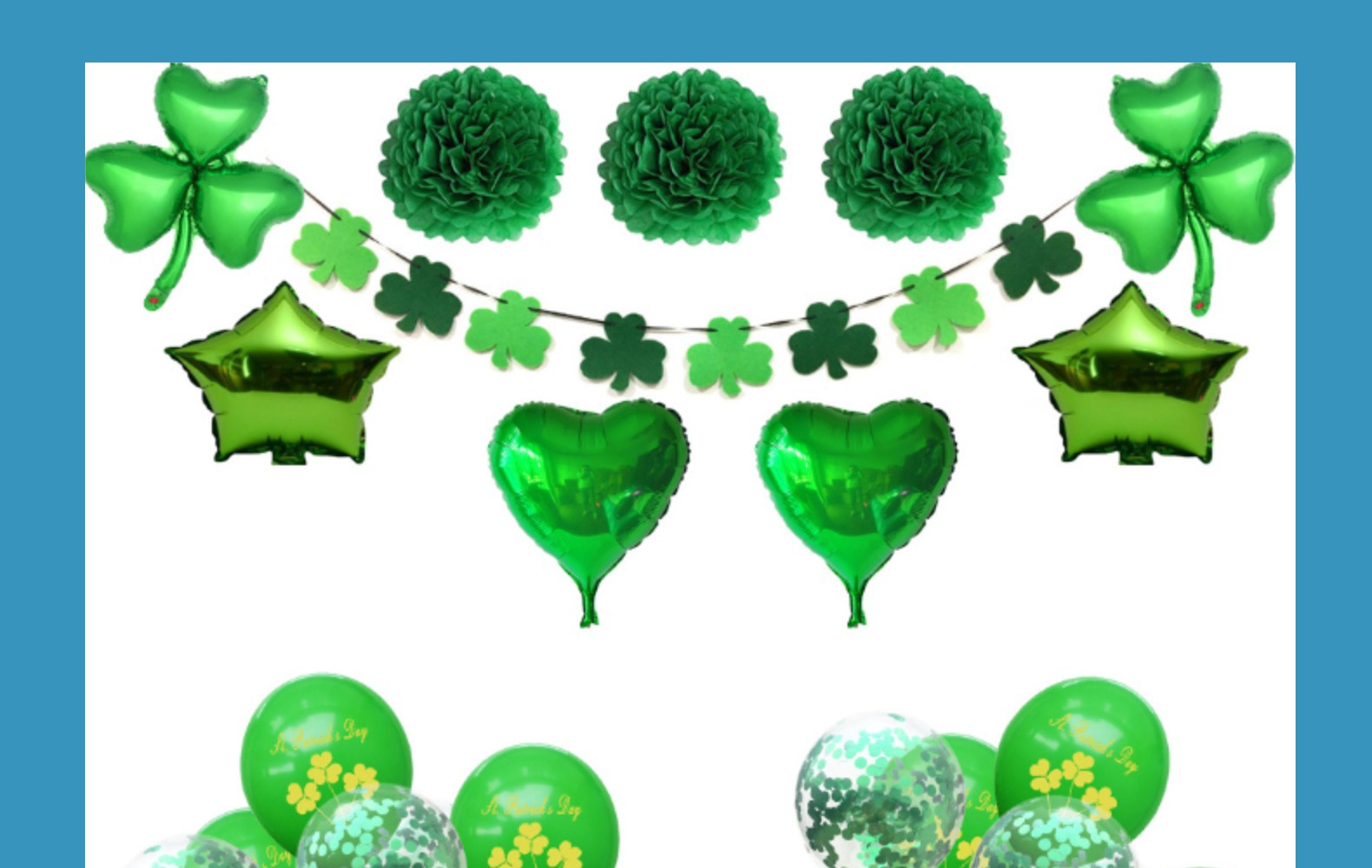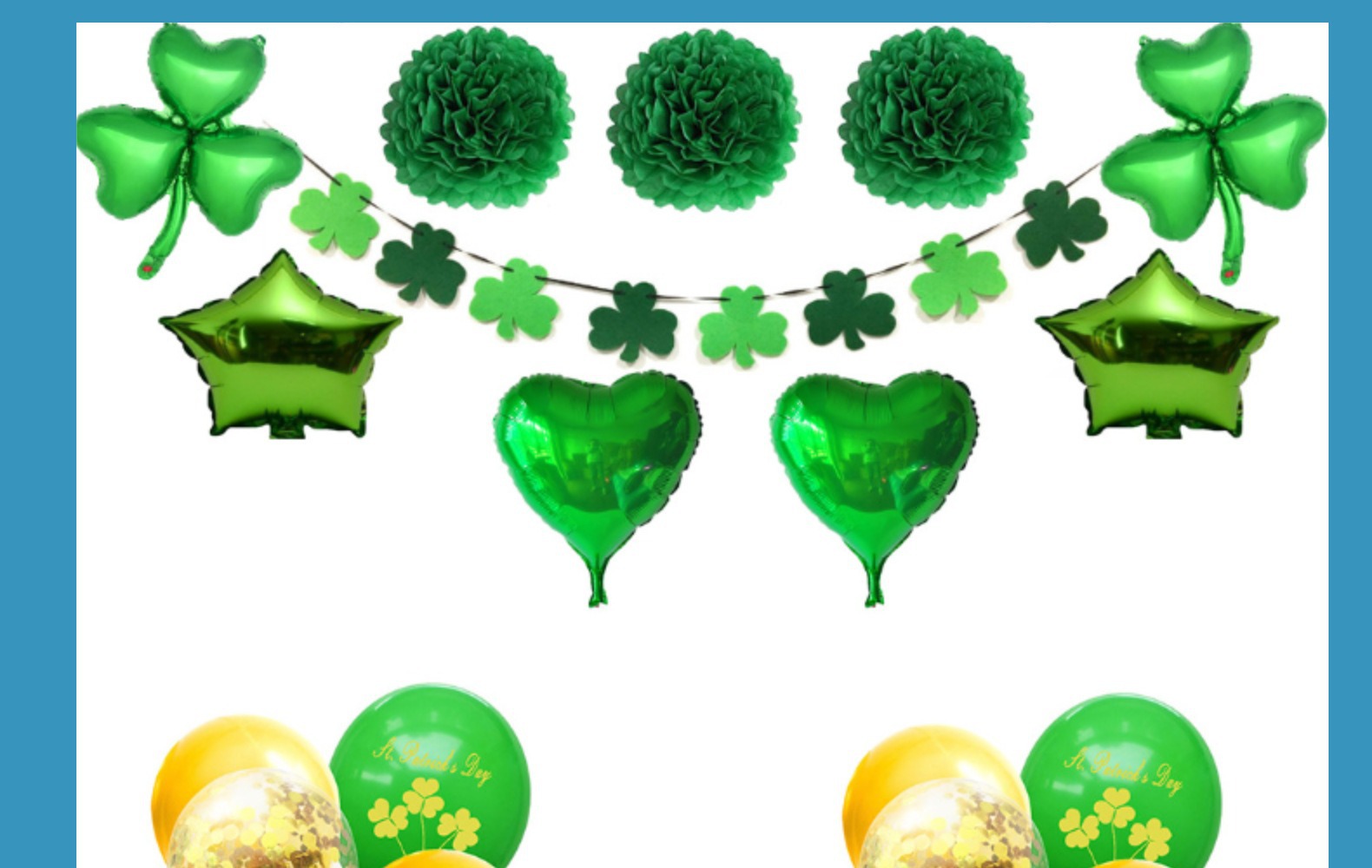 크로스 보더 핫 세일 세인트 패트릭의 날 파티 데코 풍선 키트 아일랜드 마디 그라 클로버 풀 플래그스토어 가기