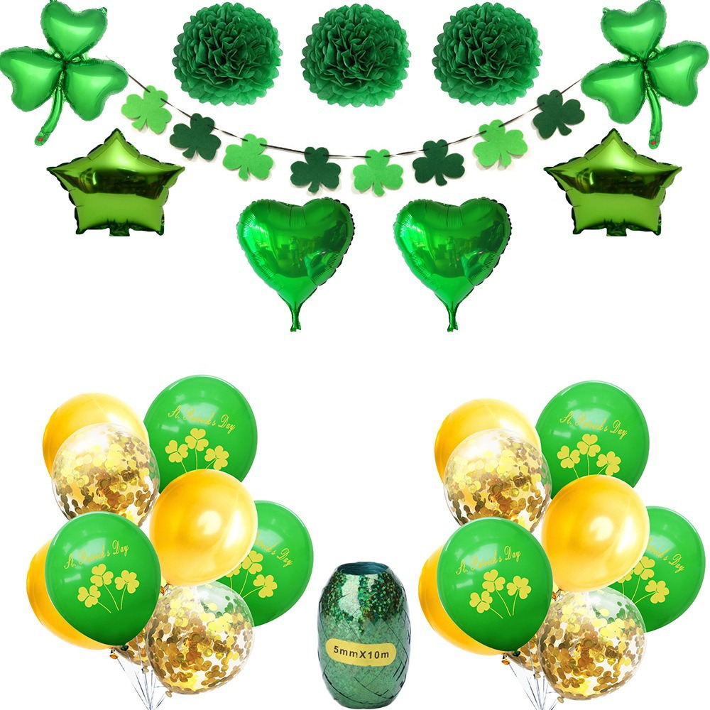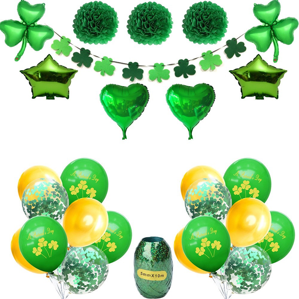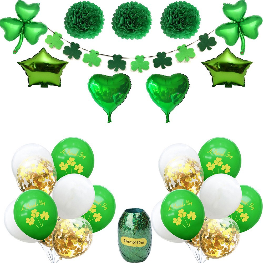 크로스 보더 핫 세일 세인트 패트릭의 날 파티 데코 풍선 키트 아일랜드 마디 그라 클로버 풀 플래그스토어 가기