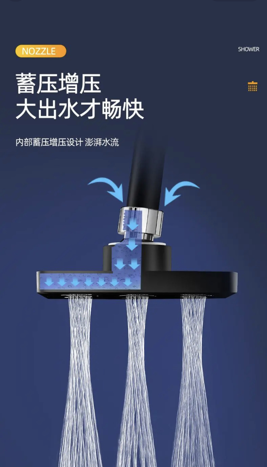 • 작은 허리 블랙 슈퍼차지 탑 스프레이 샤워 + 핸들 [사용자 정의가 필요한 경우 고객 서비스에 문의하십시오]