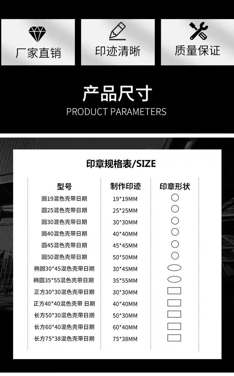 날짜가 포함된 동양도, 리턴잉크, 직판, 플립씰, 원형 및 타원형, 모든 사양, 씰 소재 도매