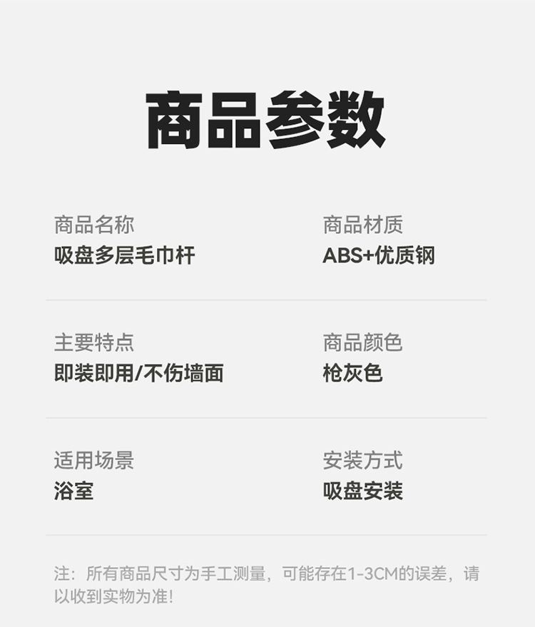 • 더블 레이어 흡입 컵 수건 걸이 60CM