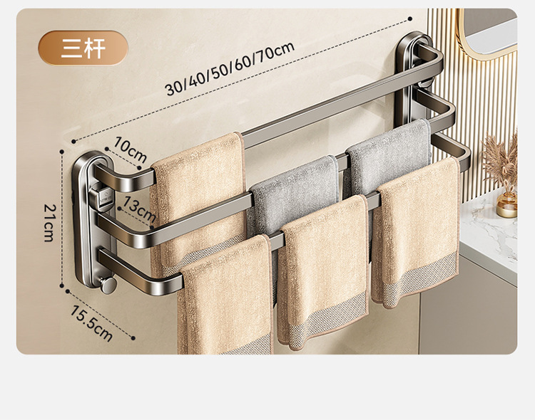 • 더블 레이어 흡입 컵 타월 바 70CM