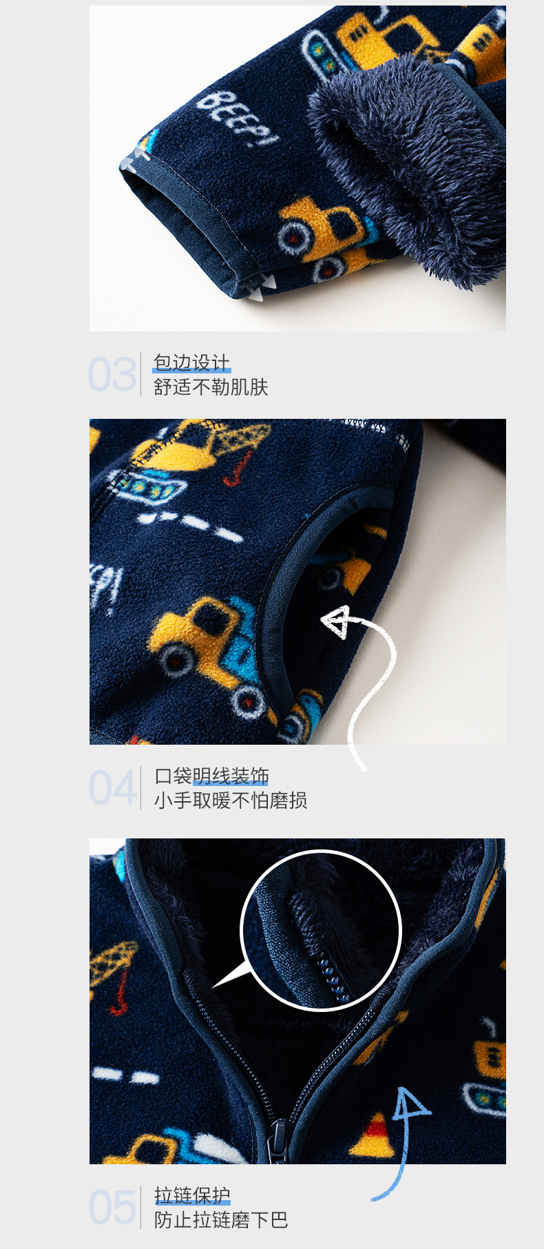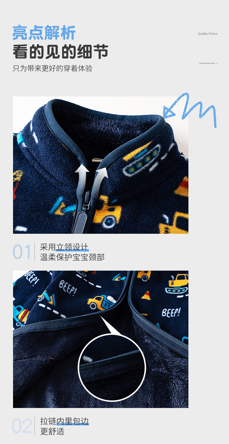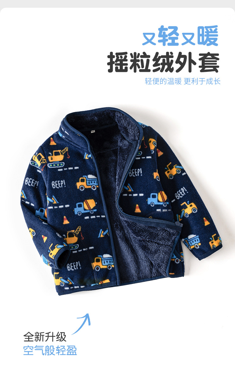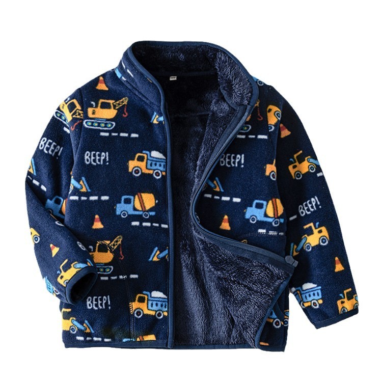 어린이 양털 코트 기모 만화 자동차 엔지니어링 차량 인쇄 블루 캐주얼 따뜻한 재킷 WY1088스토어 가기