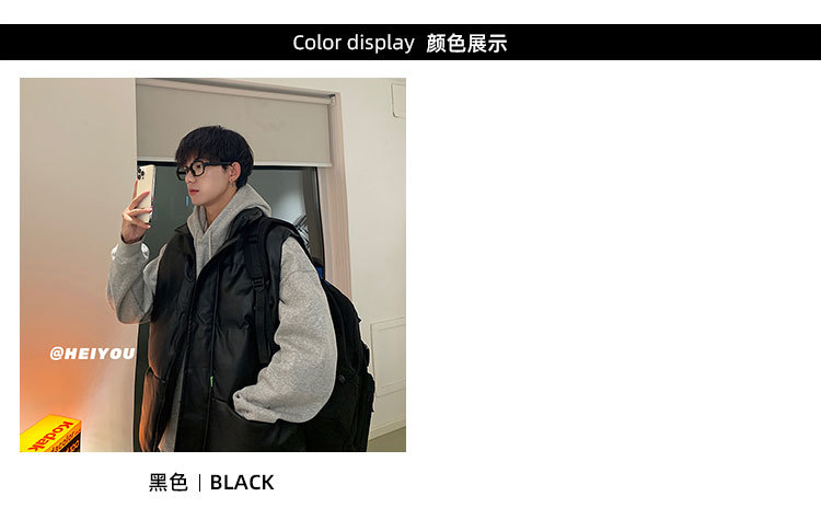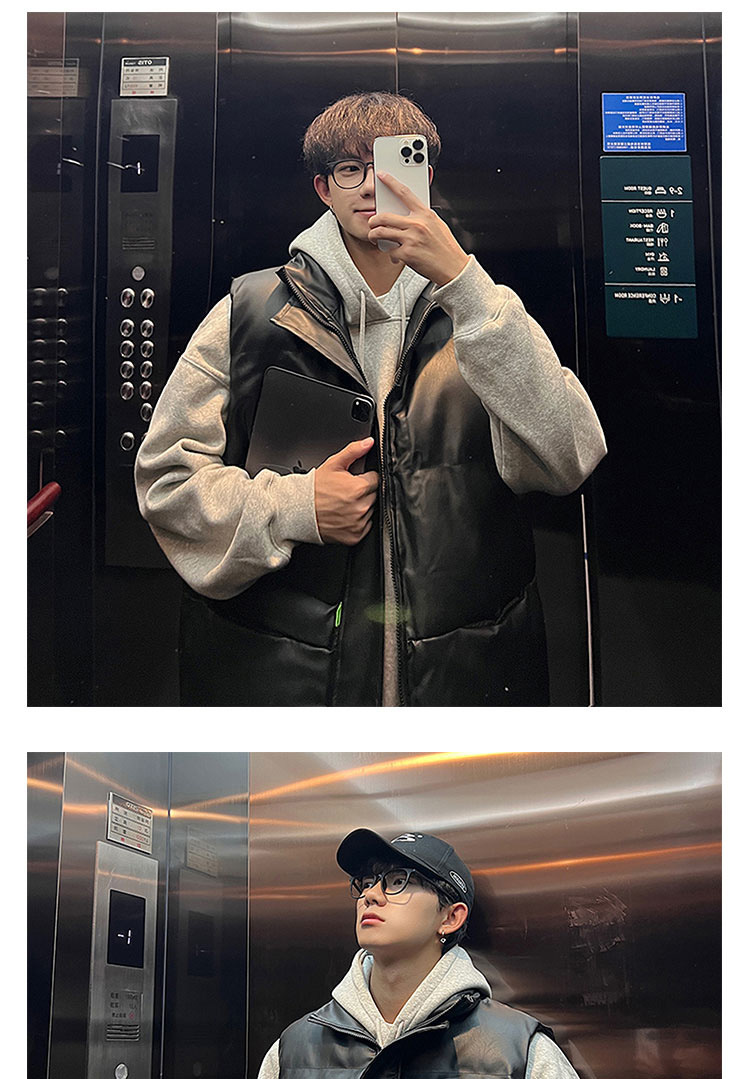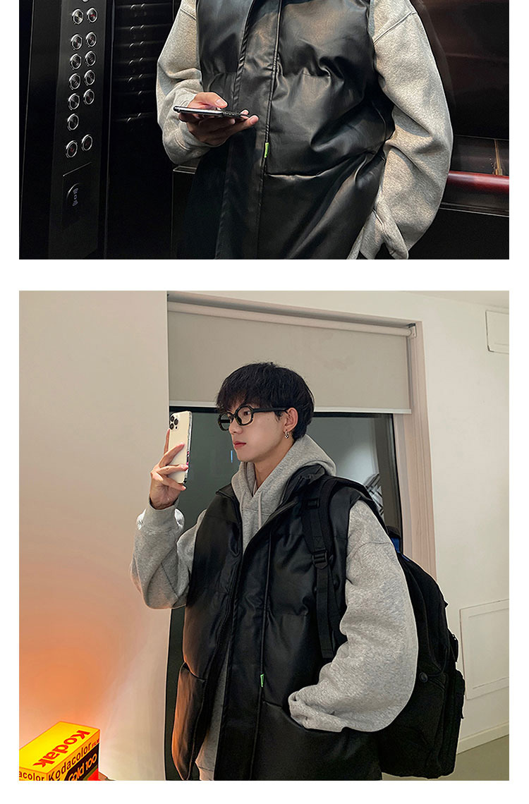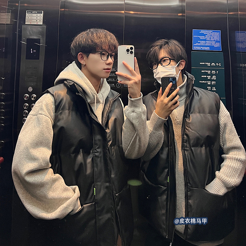 면 양복 조끼 남성 겨울 두꺼운 트렌디 스탠드 칼라 미국식 pu 가죽 민소매 양복 조끼 2024 새로운 폭발 스타일스토어 가기
