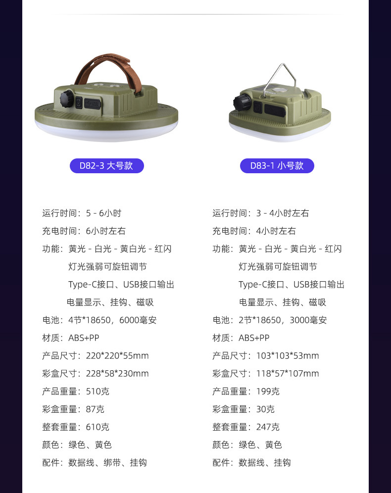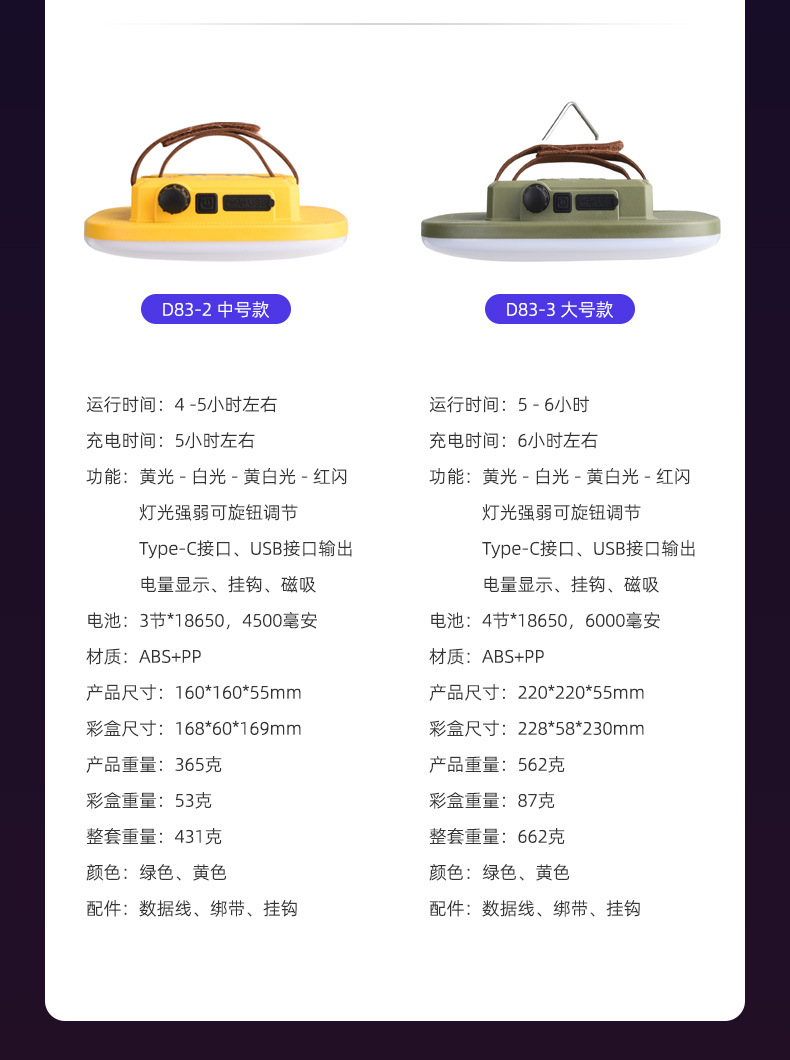 새로운 야외 캠프 텐트 조명, 매우 밝은 캠핑 조명, 매우 긴 배터리 수명, 조절 가능한 밝기, 충전식 보조 조명