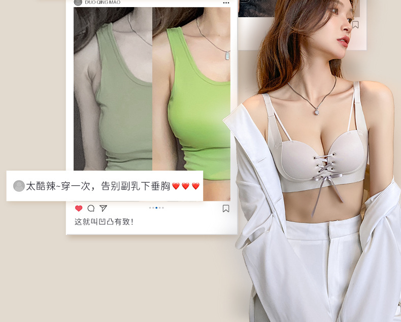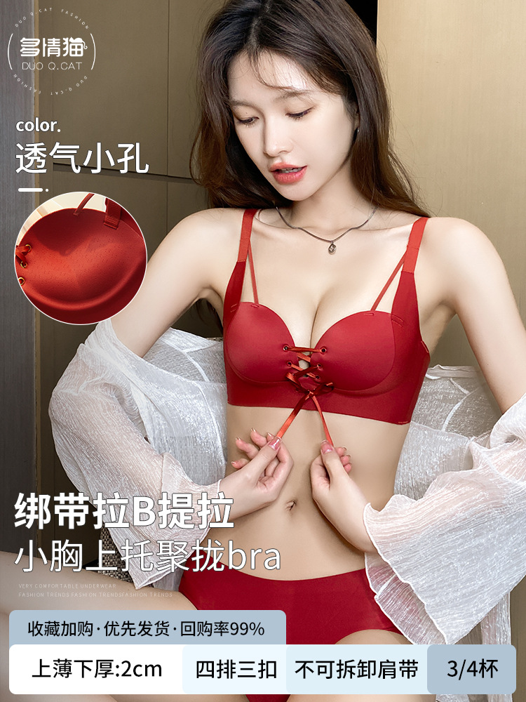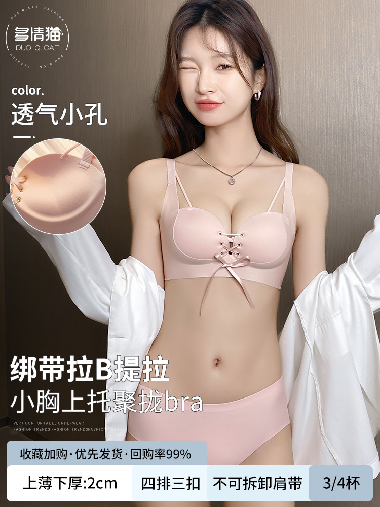 작은 가슴 푸쉬 업 속옷 스틸 링이없는 여성의 파라 마리 클로저 패소니 고양이 쇼 큰 안티 처짐 흔적이없는 섹시한 브래지어 세트스토어 가기