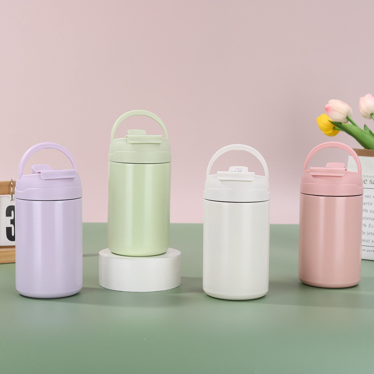 간단한 304 스테인레스 스틸 보온병 컵 휴대용 커피 컵 스트레이트 음료 스트레이트 흡입 컵 더블 레이어 진공 동반 핸들러 컵스토어 가기