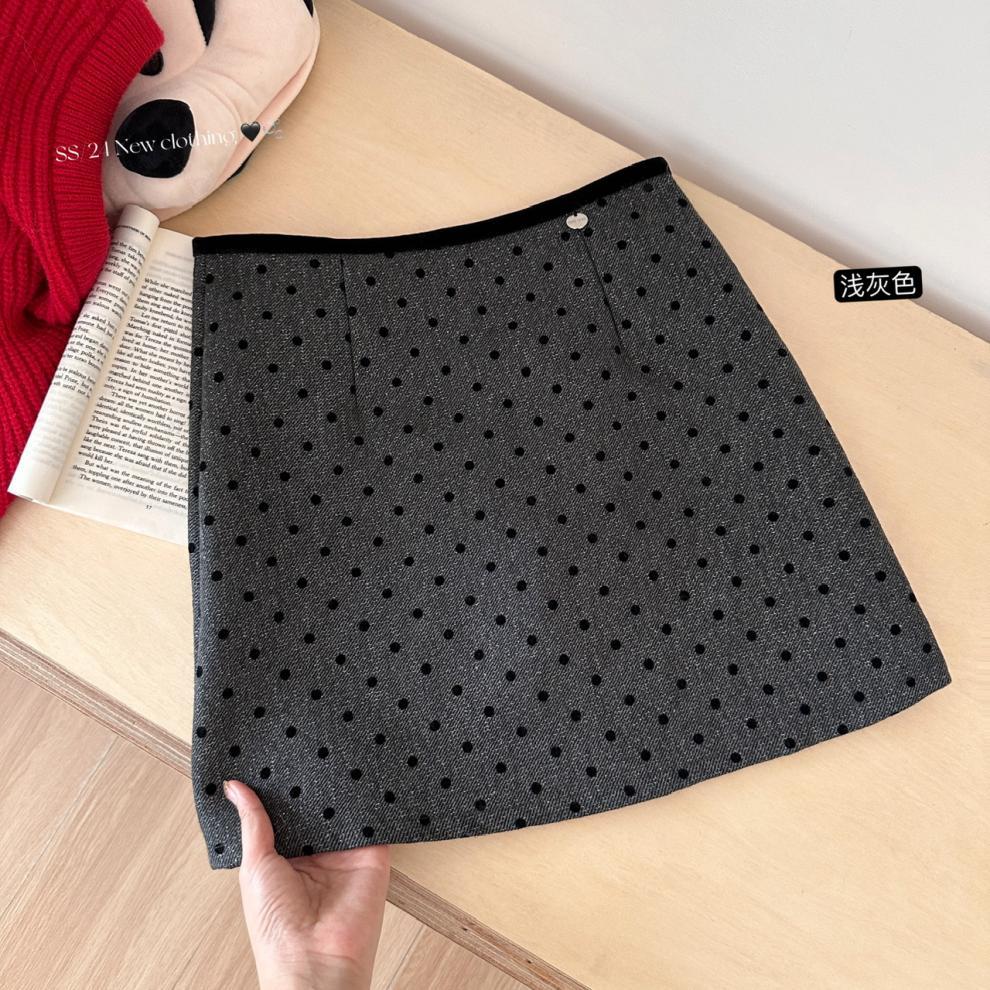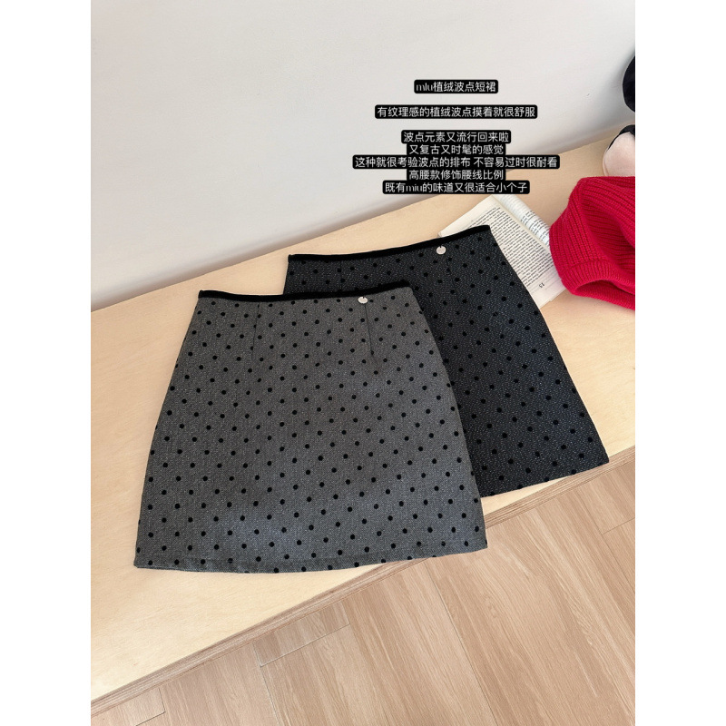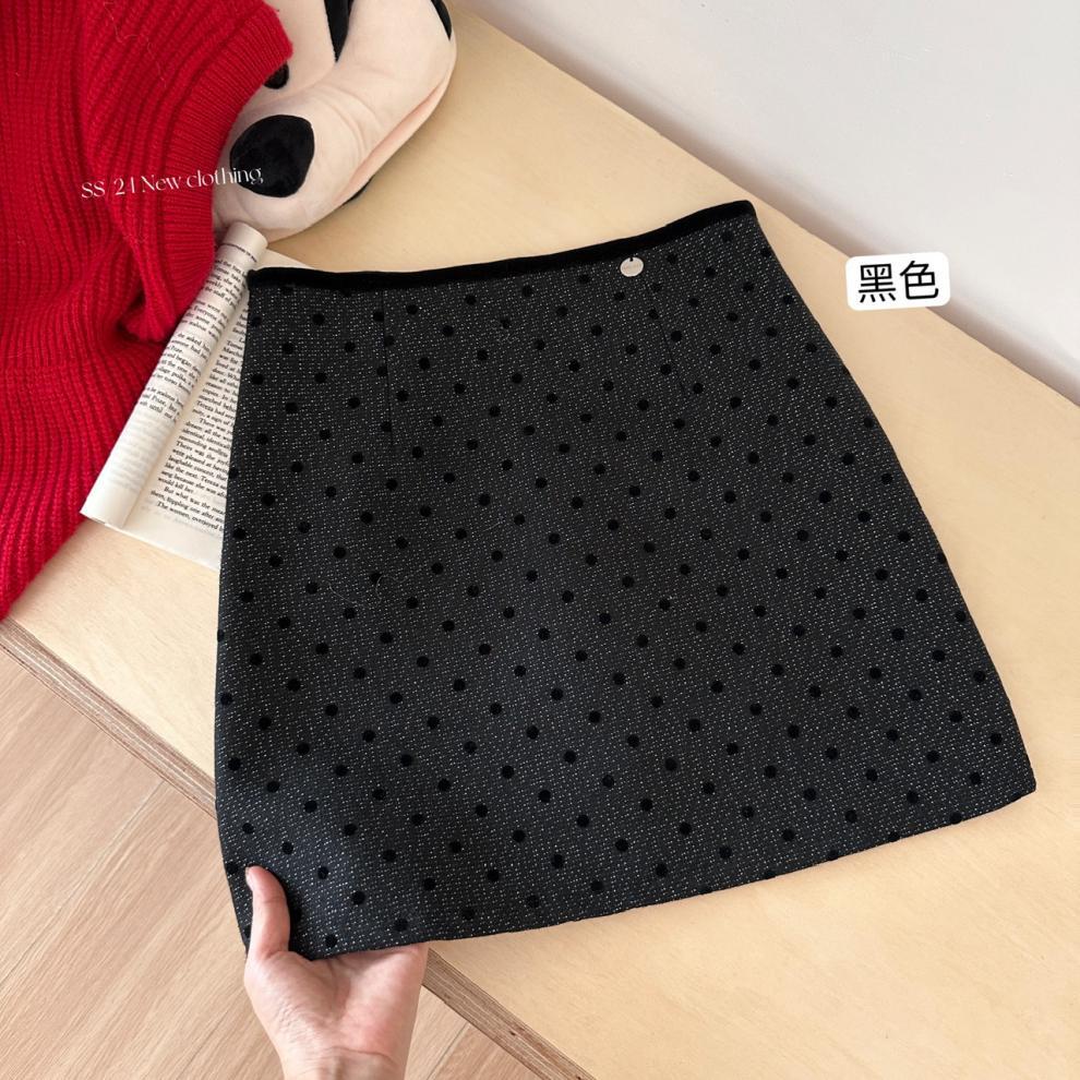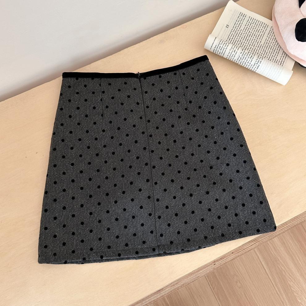 사이 파인애플 스파이스 소녀 블랙 잠금 웨이브 도트 스커트 여성의 2025 새로운 높은 허리 슬림 A 라인 힙합 스커트