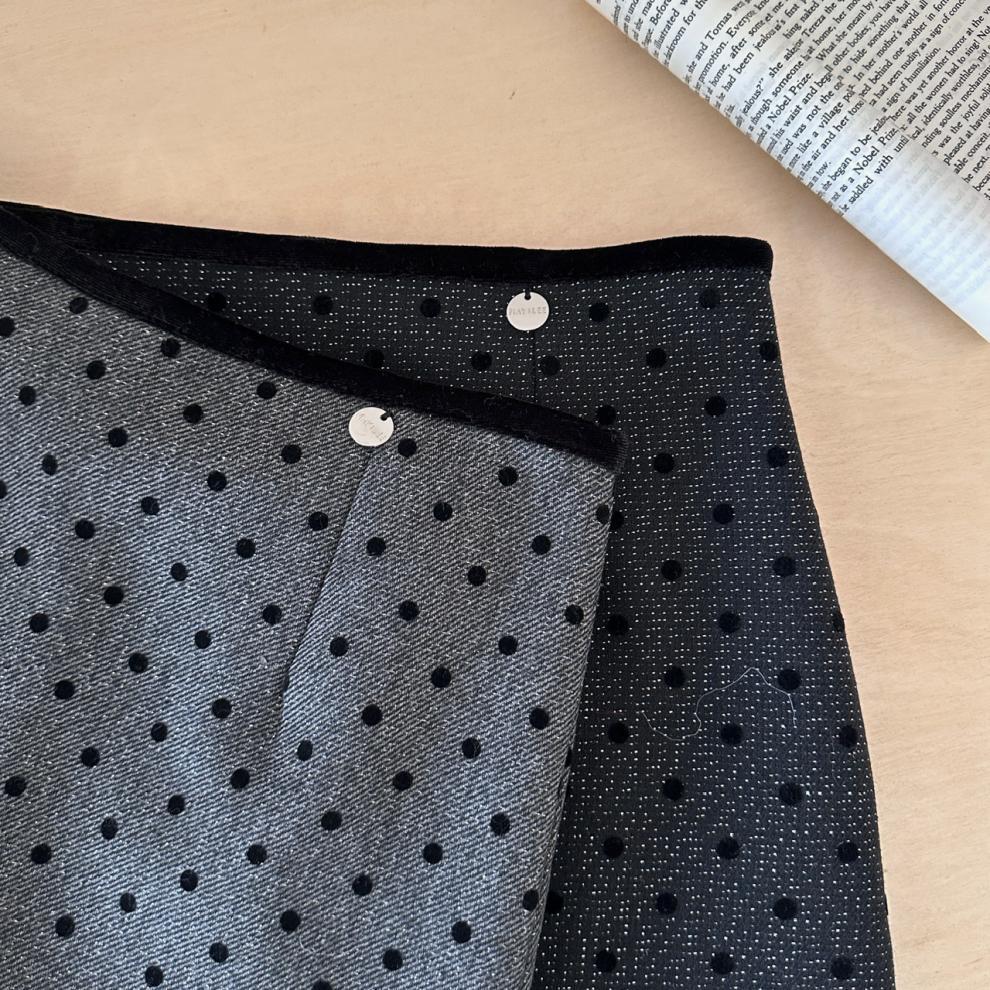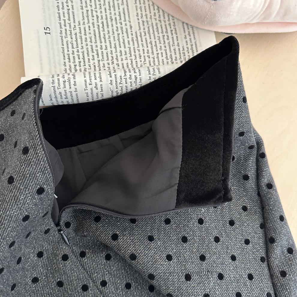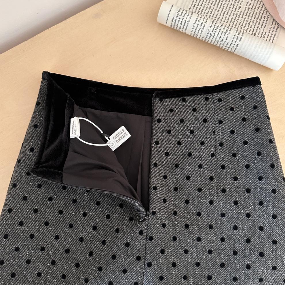 사이 파인애플 스파이스 소녀 블랙 잠금 웨이브 도트 스커트 여성의 2025 새로운 높은 허리 슬림 A 라인 힙합 스커트