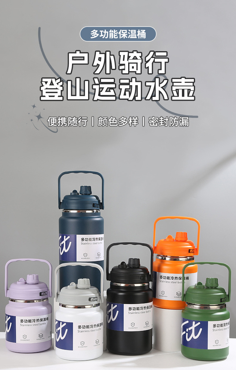 스테인레스 스틸 핸들 보온병 야외 사이클링 등산 주전자 가정용 대용량 다기능 보온병 버킷스토어 가기