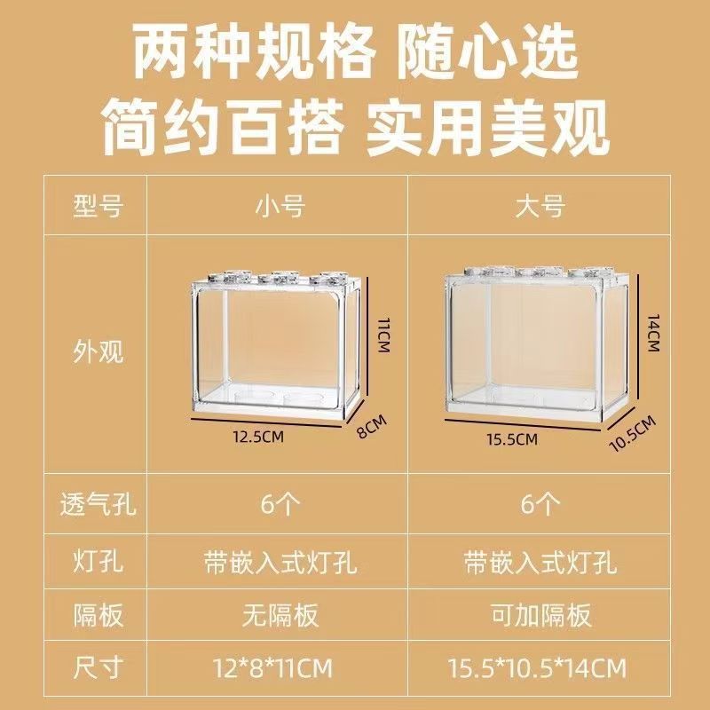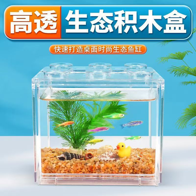 아크릴 투명한 물고기 탱크 양동이 물고기 탱크 멀티 그리드 빌딩 블록 물고기 탱크 마이크로 풍경 작은 가정용 2 대 1 데스크탑 조경스토어 가기