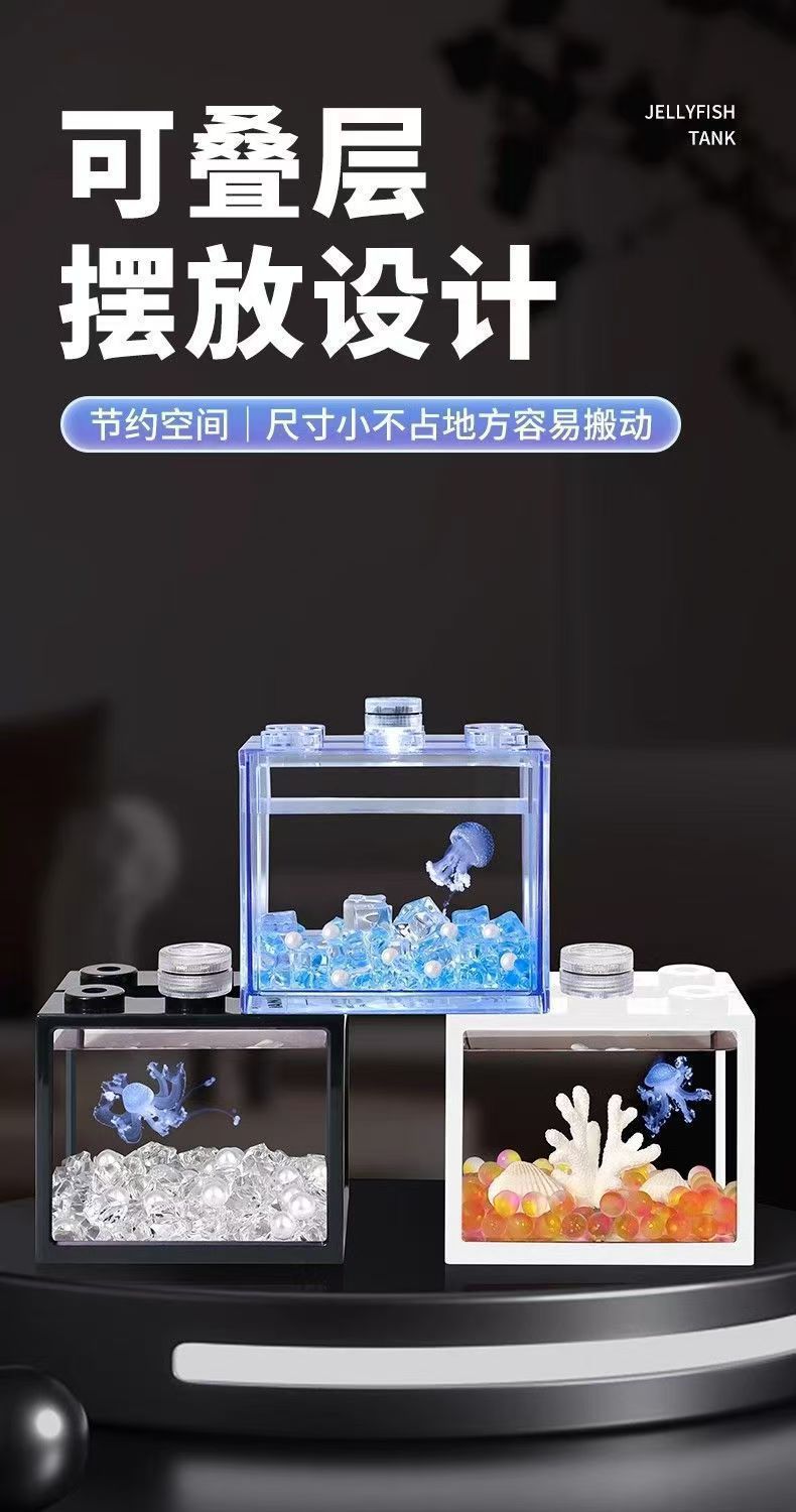 아크릴 투명한 물고기 탱크 양동이 물고기 탱크 멀티 그리드 빌딩 블록 물고기 탱크 마이크로 풍경 작은 가정용 2 대 1 데스크탑 조경