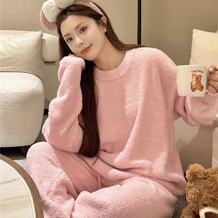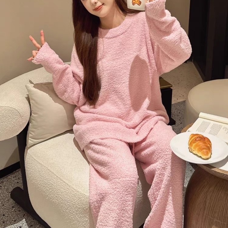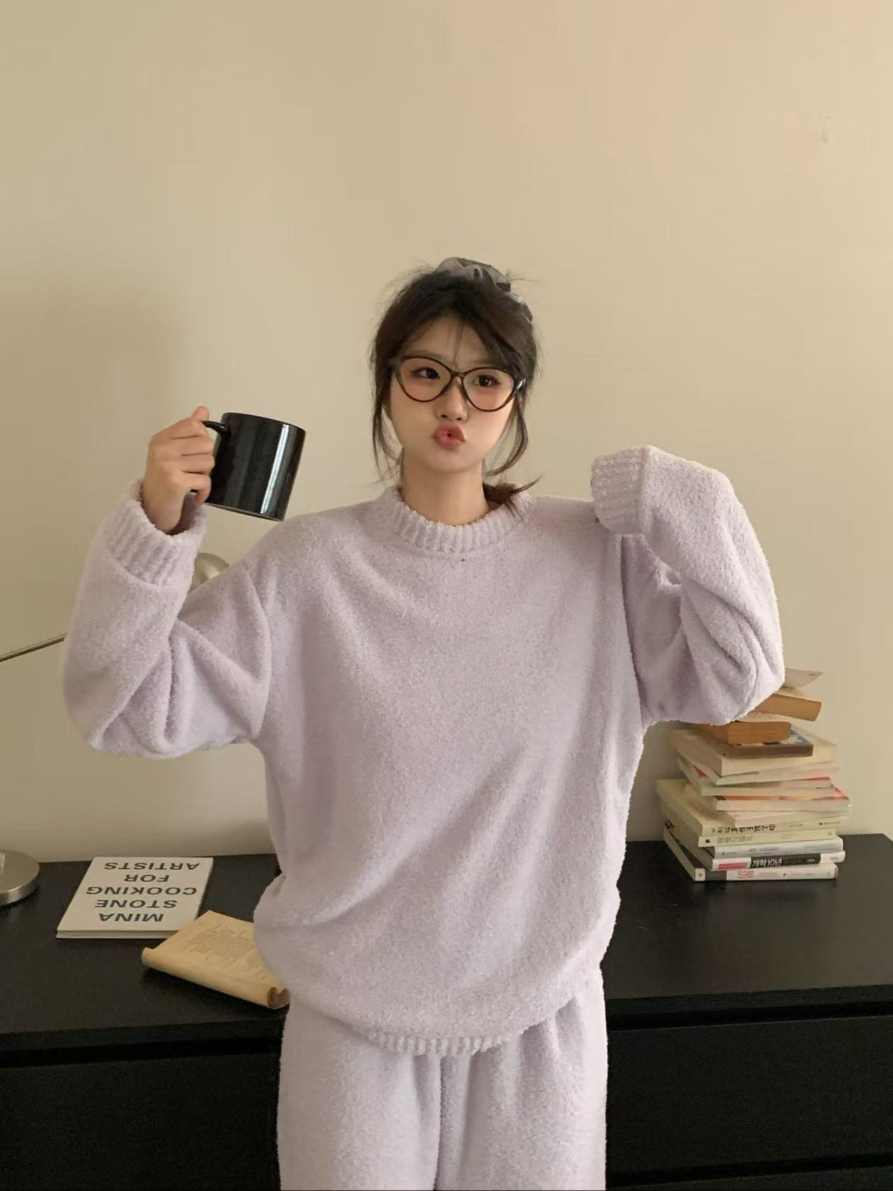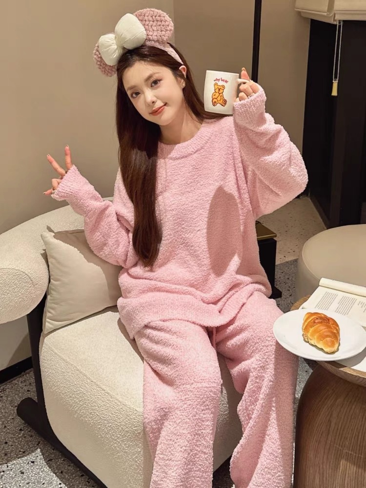 단색 잠옷 여성의 가을과 겨울 부드러운 반쪽 벨벳 부드러운 기모 따뜻한 간단한 고급 홈 의류 세트스토어 가기