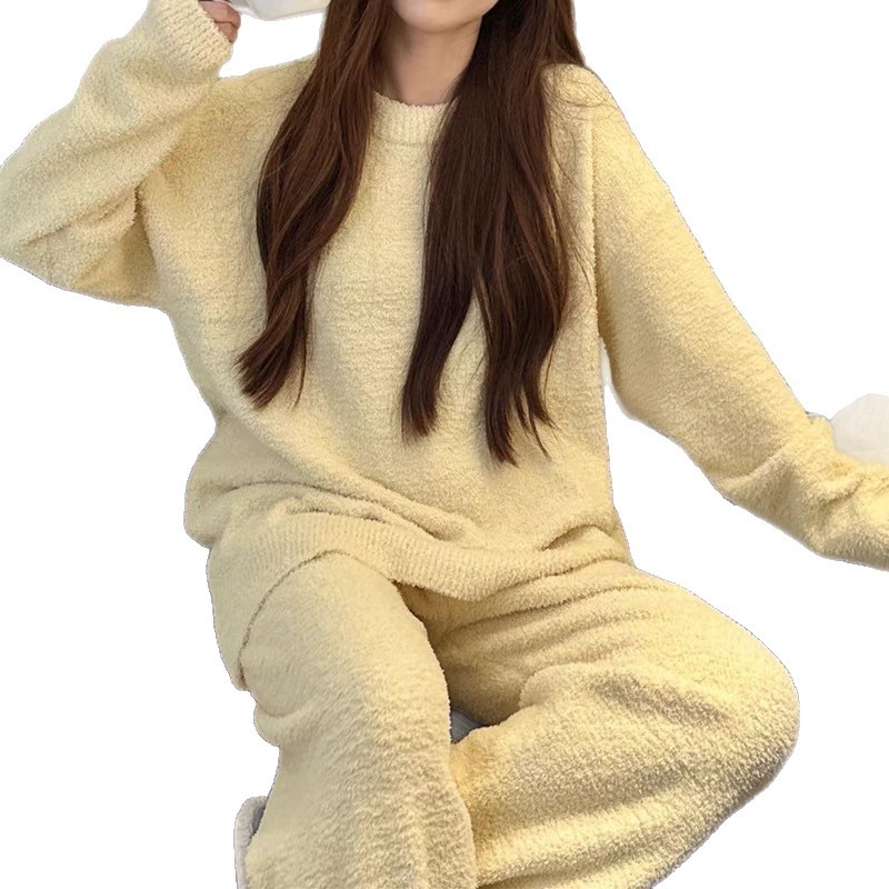 단색 잠옷 여성의 가을과 겨울 부드러운 반쪽 벨벳 부드러운 기모 따뜻한 간단한 고급 홈 의류 세트