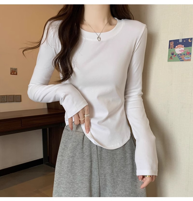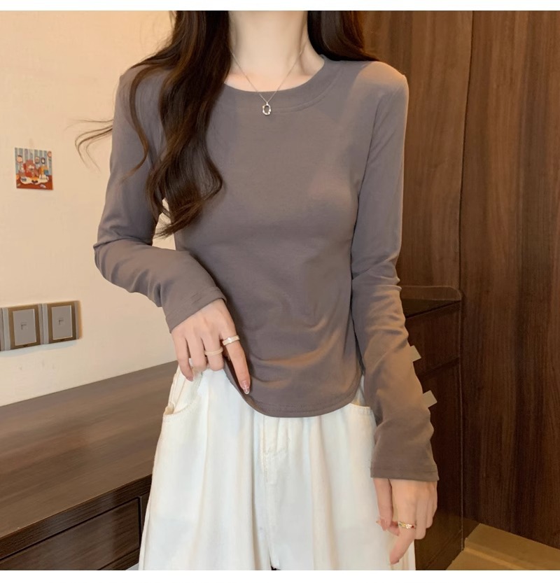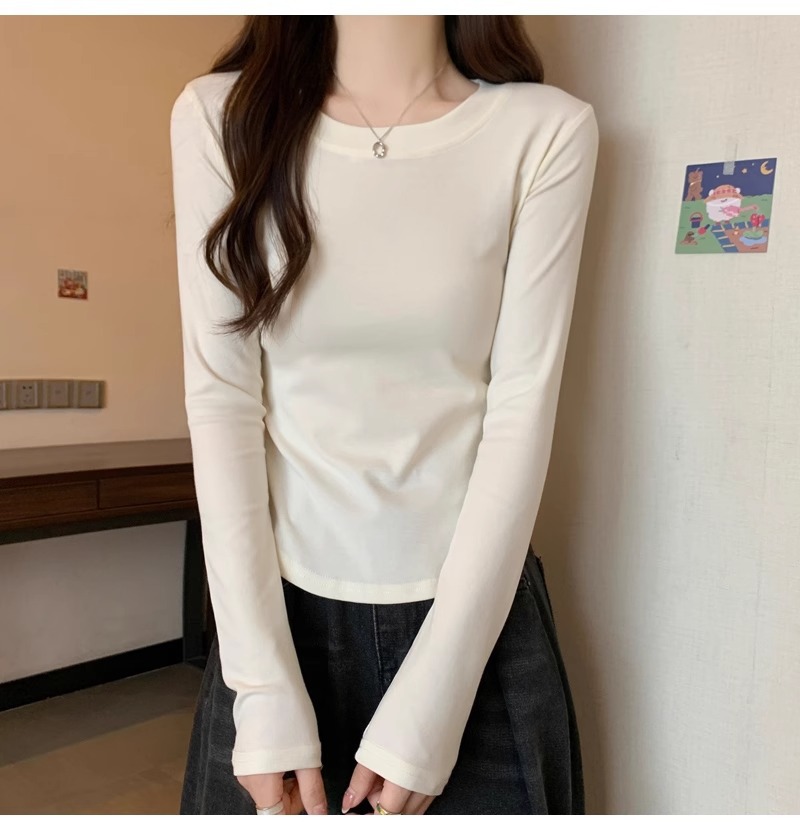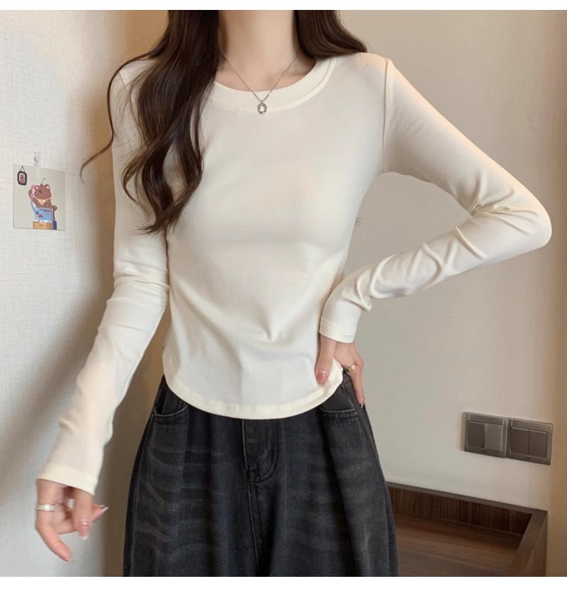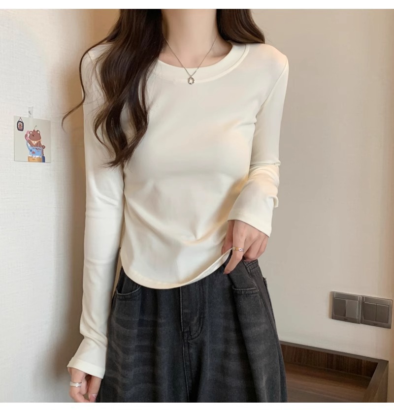 가을과 겨울 독일 벨벳 따뜻한 긴팔 티셔츠 여성용 둥근 목 어깨베이스 셔츠 곡선 바닥 올 매치 캐주얼 슬리밍 트렌디