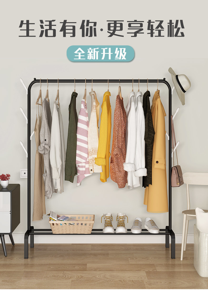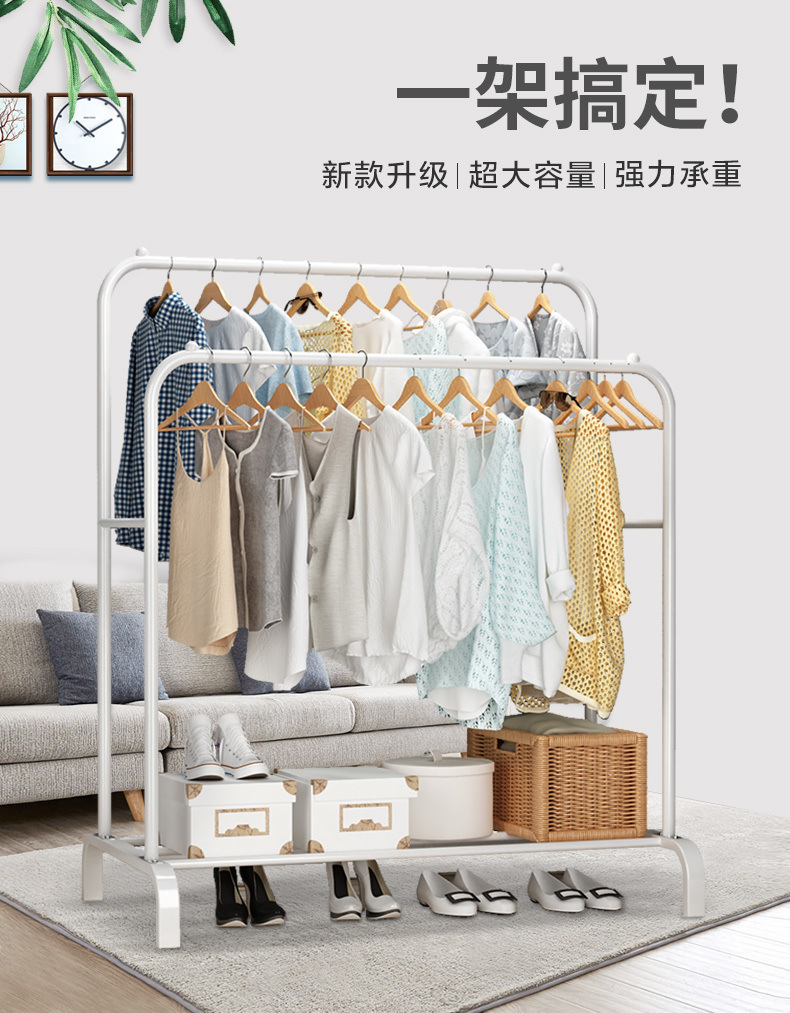 코트 랙 간단한 건조 랙 침실 옷 옷걸이 가정용 바닥 서 싱글 및 더블로드 의류 랙