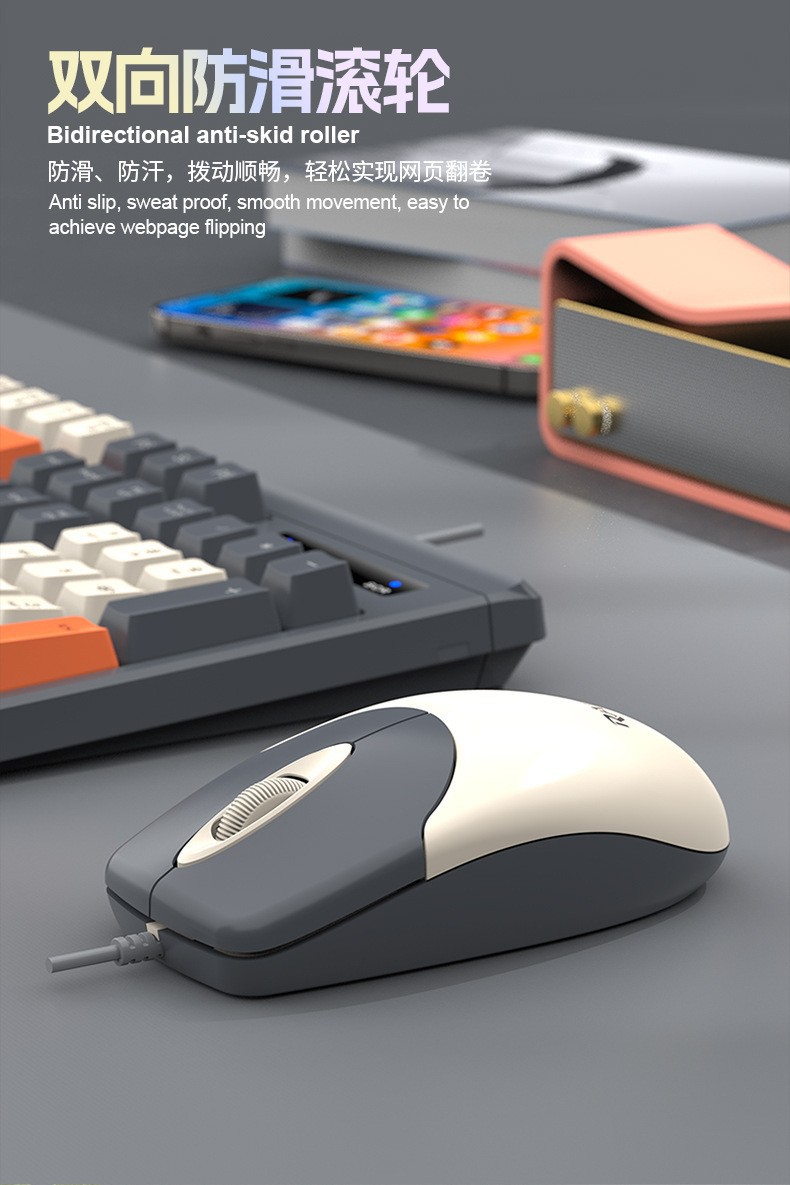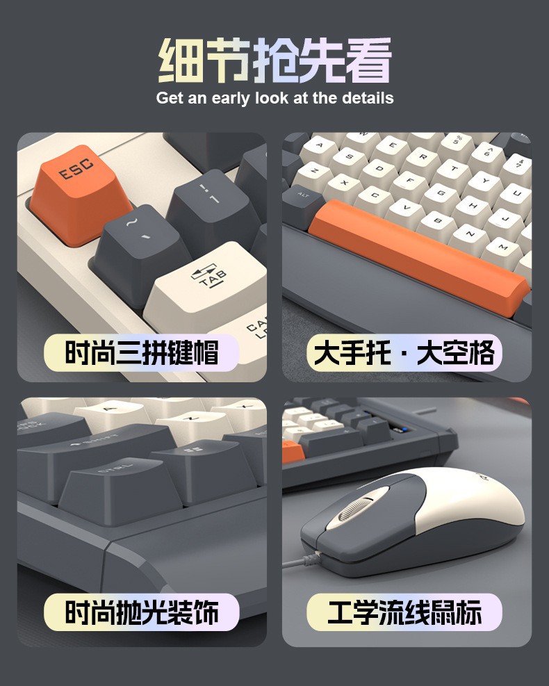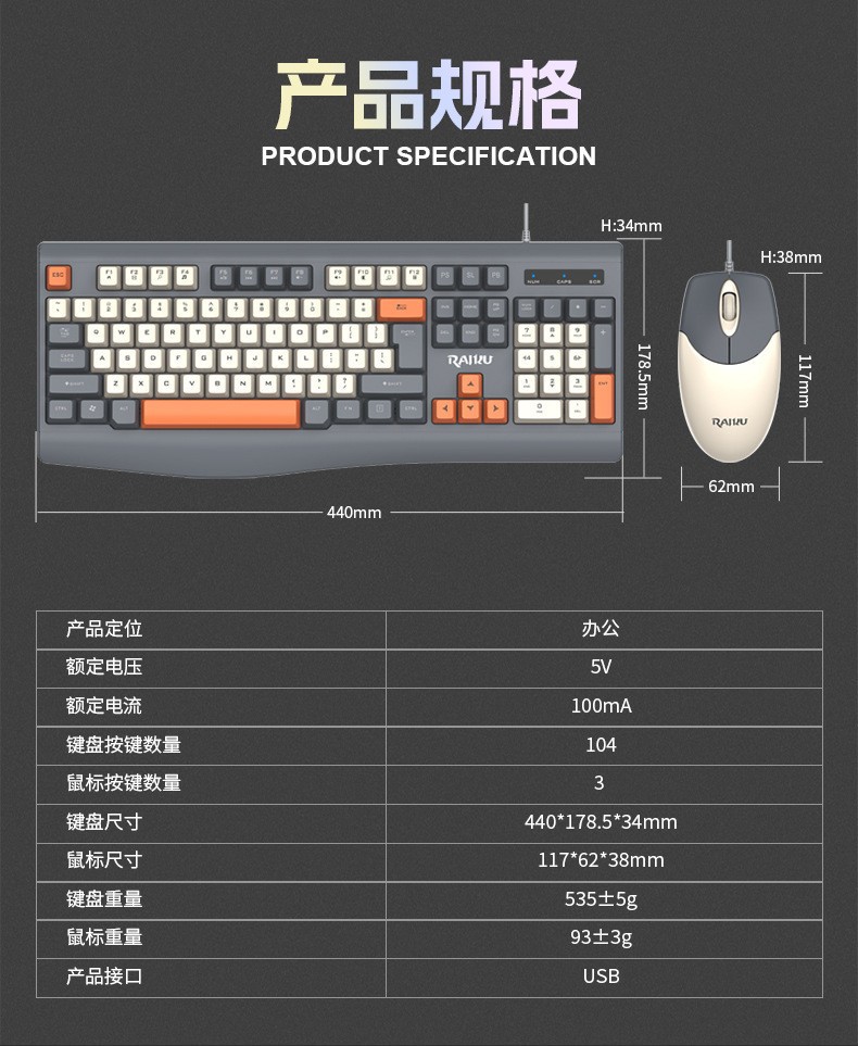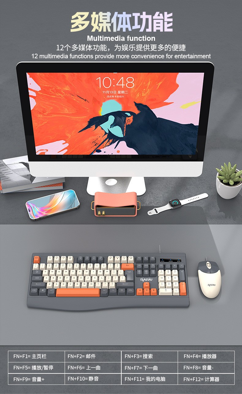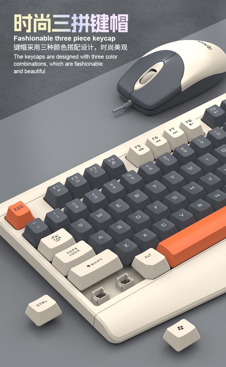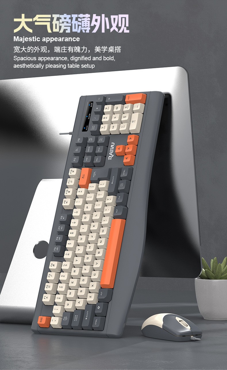 • 레이쿠이 R903 그레이 화이트 오렌지 키보드 및 마우스 세트