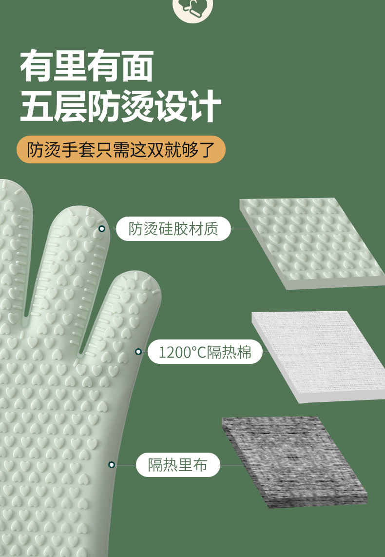 • [5겹의 두꺼운 화상방지 실리콘 장갑] M 사이즈 2개/여성 선호