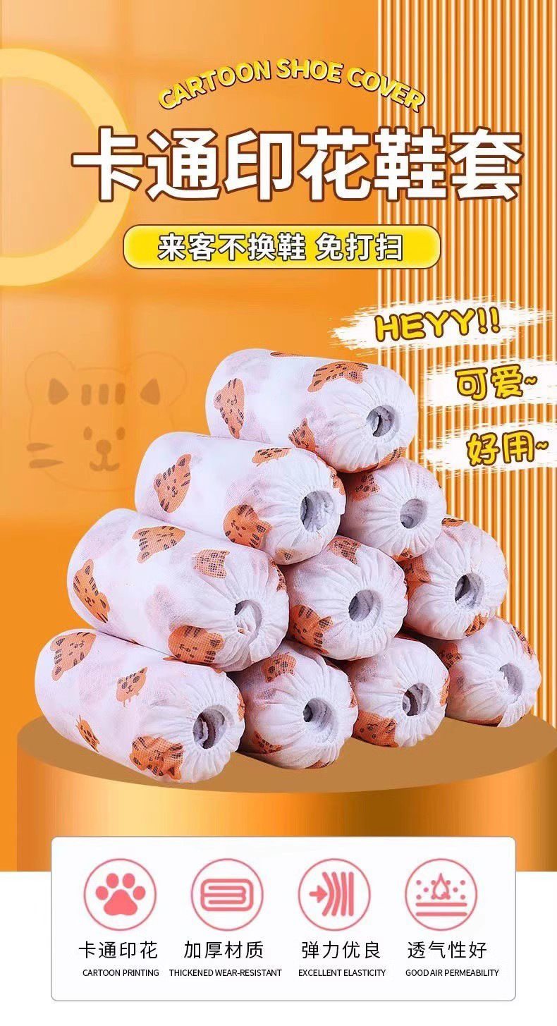일회용 신발 커버 두꺼운 부직포 가정용 만화 인쇄 내마모성 미끄럼 방지 무료 실내 두꺼운 발 커버스토어 가기