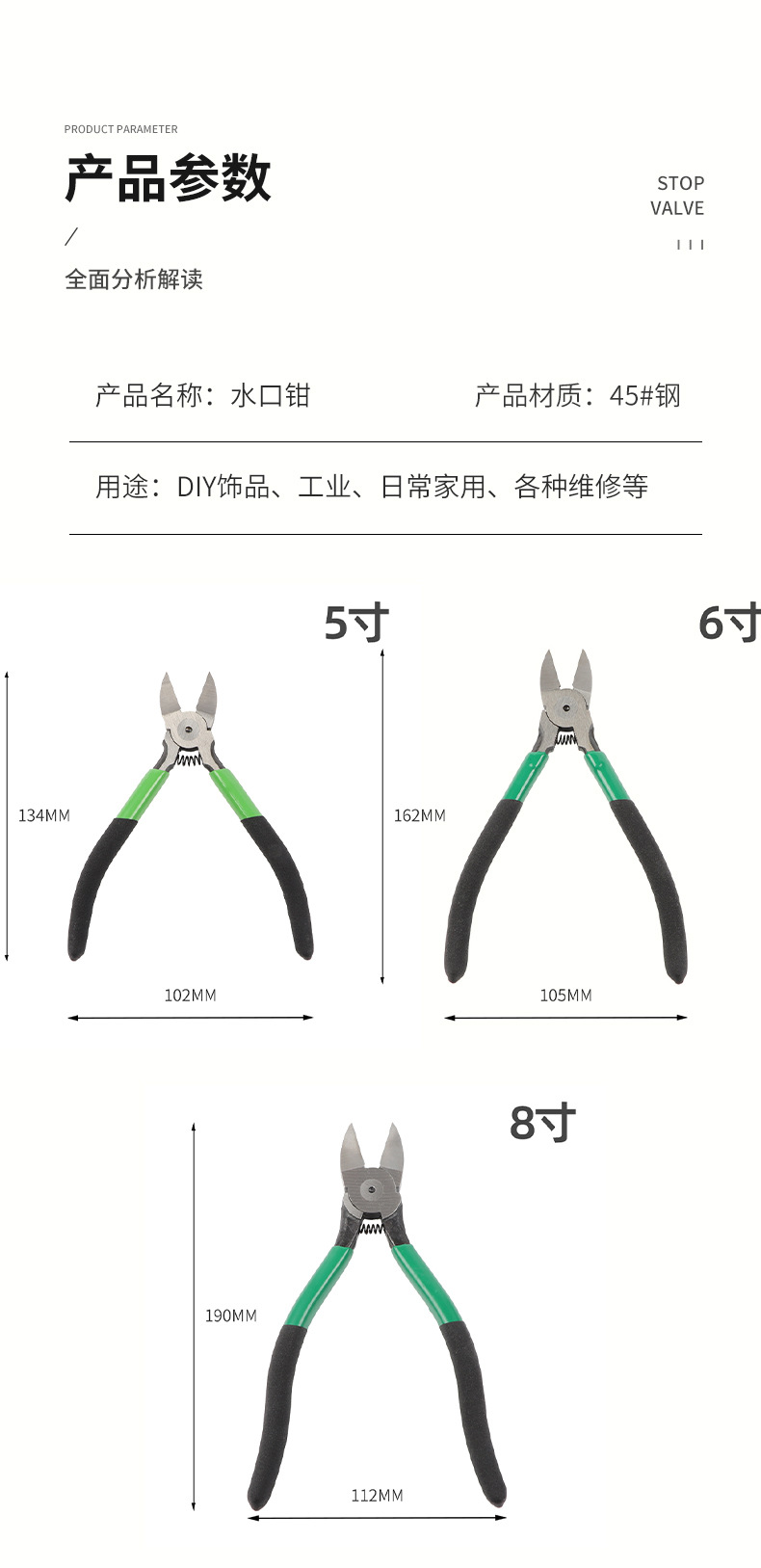 Oblique 펜치 부분 펜치 스틸 와이어 비스듬한 입 절단 펜치 5/6/8 인치 물 입 펜치 산업 전기 기술자 노동 절약 비스듬한 입