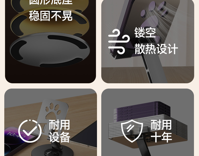 모든 금속 고양이 발톱 휴대 전화 데스크탑 스탠드 평면 패널 회전 감압 다기능 접이식 열 분산 게으른 사람 지원 스탠드