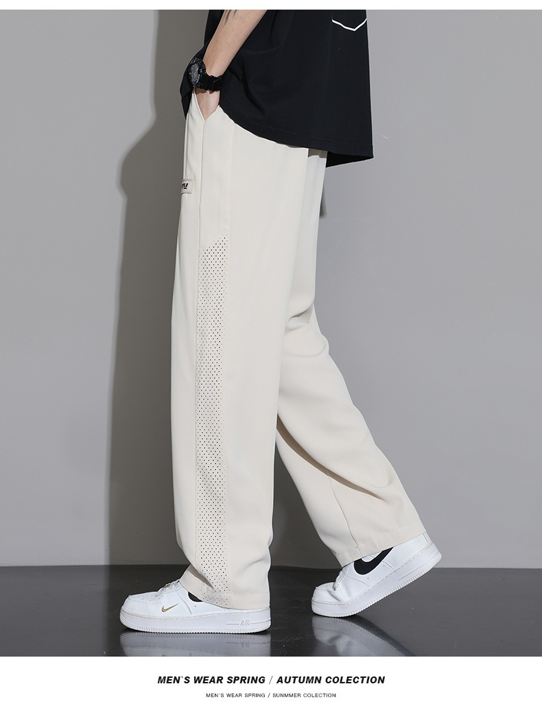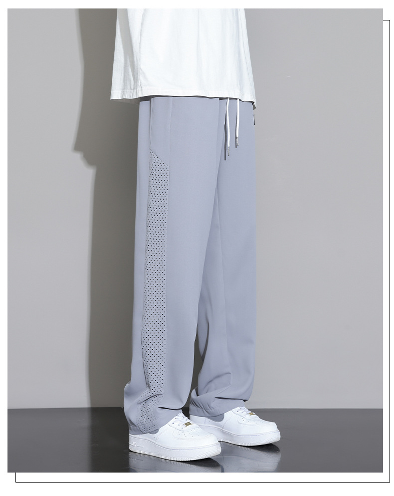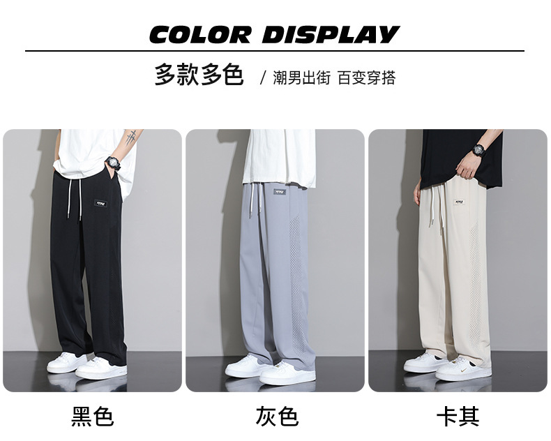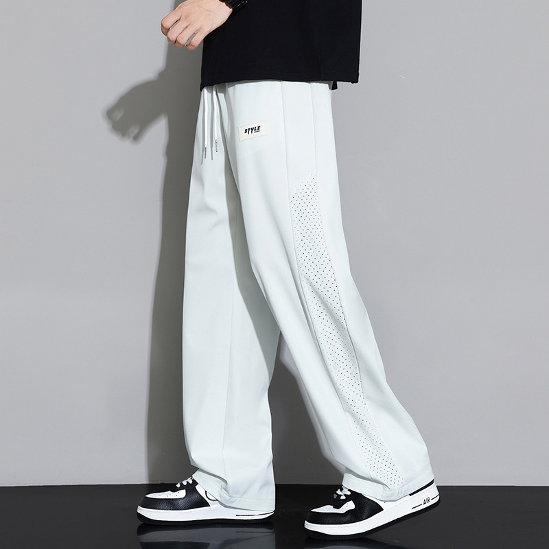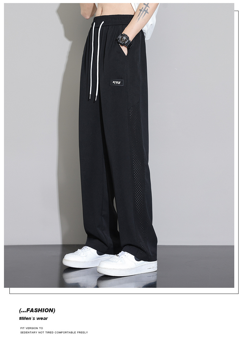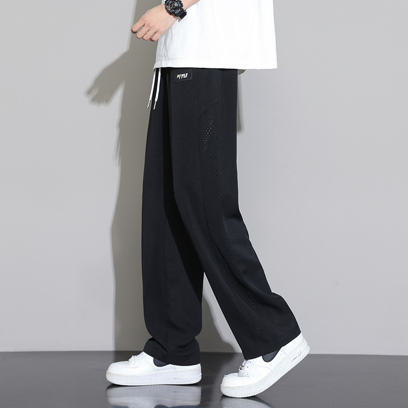일본 얼음 실크 바지 남성 2025 새로운 여름 얇은 유행 브랜드 넓은 다리 스포츠 바지 느슨한 스트레이트 캐주얼 바지스토어 가기