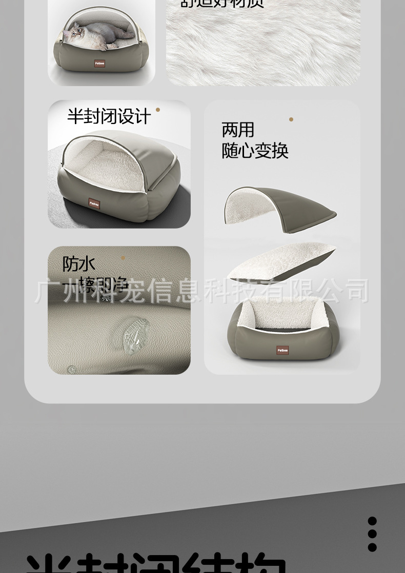 고양이 둥지 애완 동물 따뜻한 분리형 및 빨 수있는 토끼 양털 겨울 반폐쇄 고양이 텐트 기모 둥지