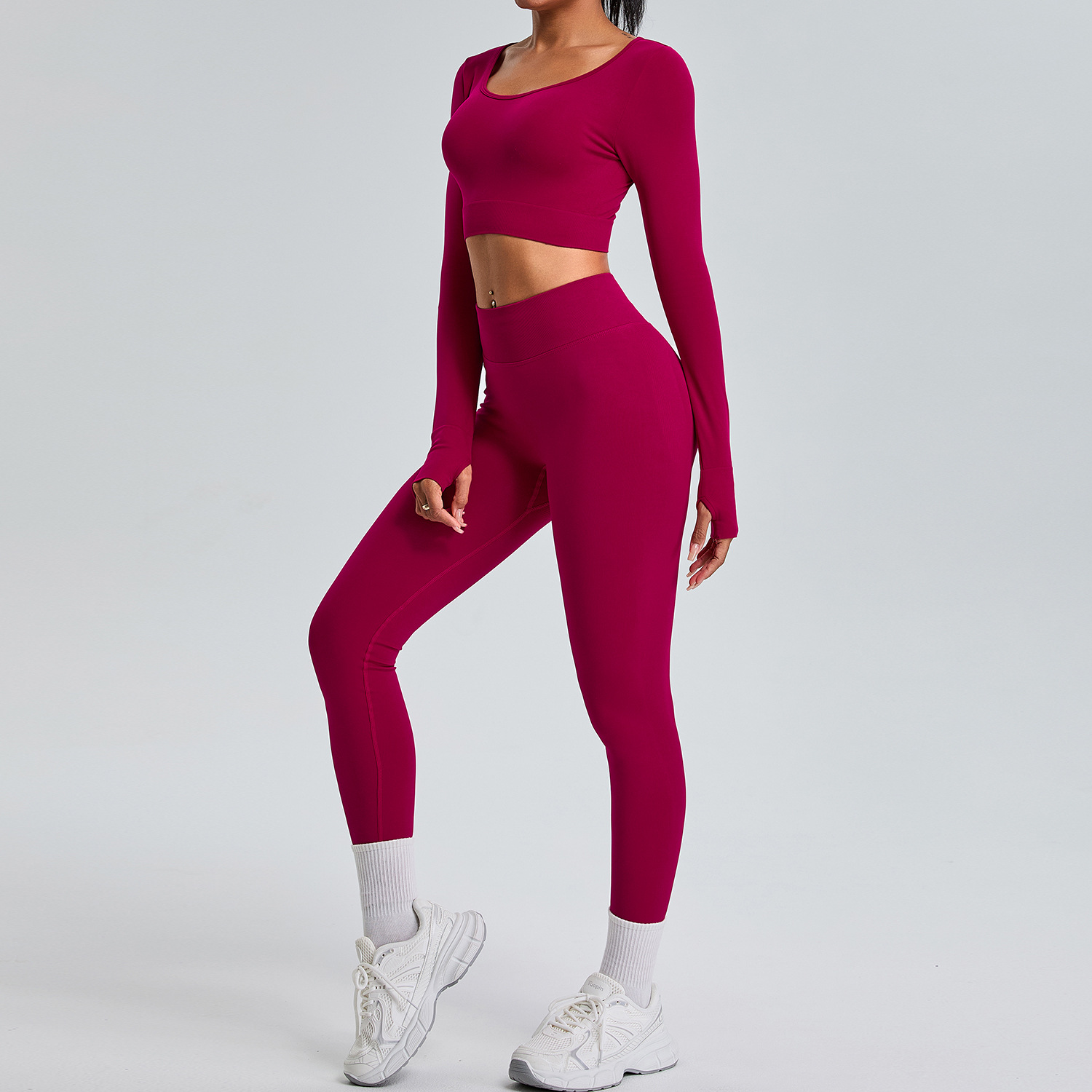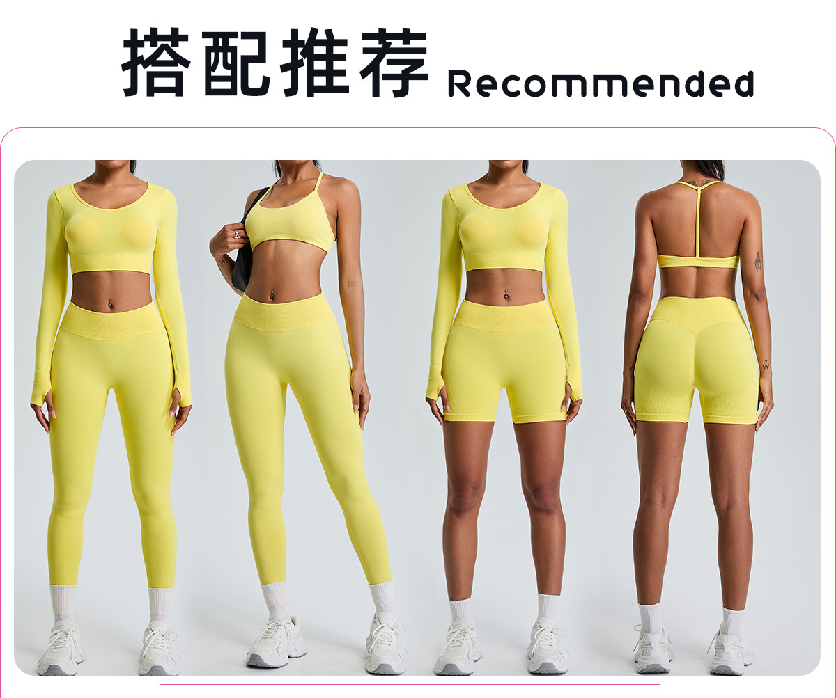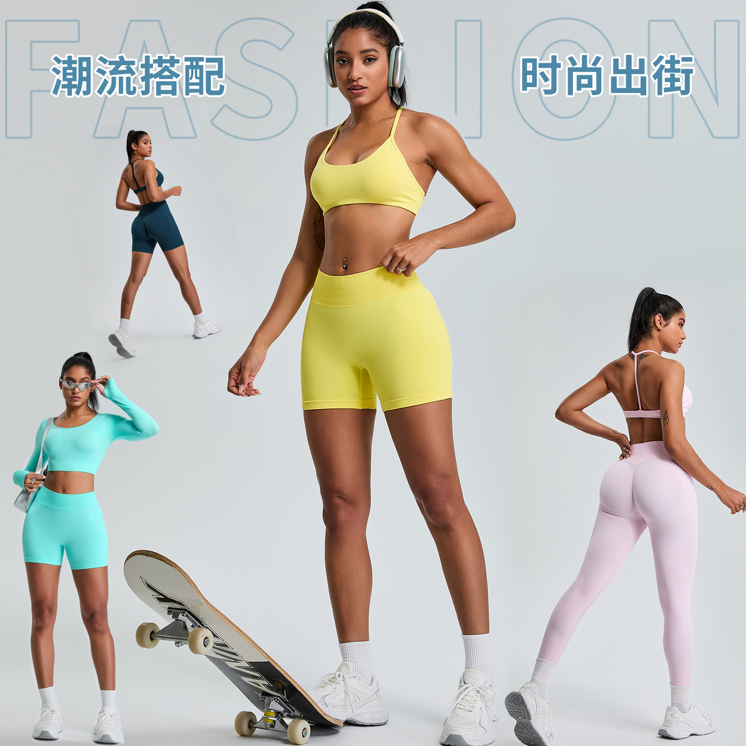 국경 간 새로운 슬림 핏 원활한 요가 세트 세트 여성 복숭아 엉덩이 타이트 스포츠 라이딩 세트 피트니스 세트