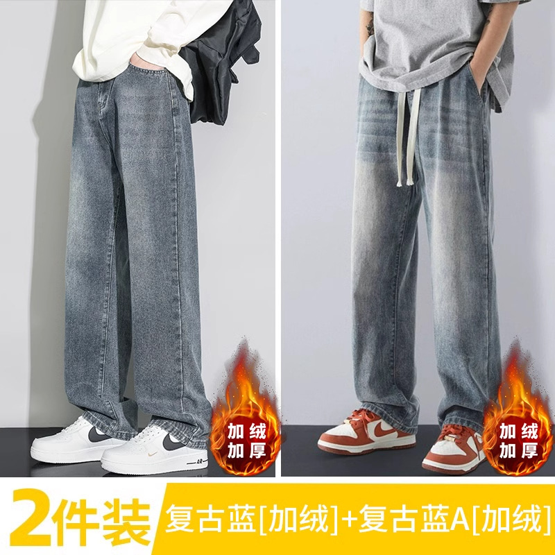 NASA 아메리칸 스타일 스트레이트 청바지 남자 가을과 겨울 2024 패션 브랜드 느슨한 캐주얼 바지 넓은 다리 빈티지 기모스토어 가기