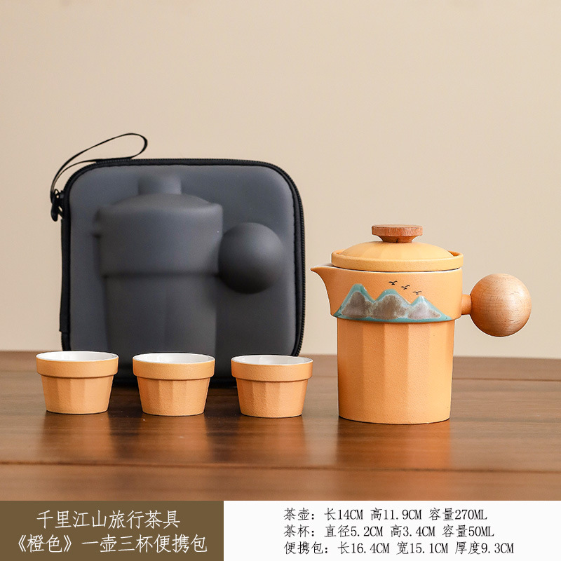 • 화려한 산과 강 공, 냄비 1개와 컵 3개 - 주황색