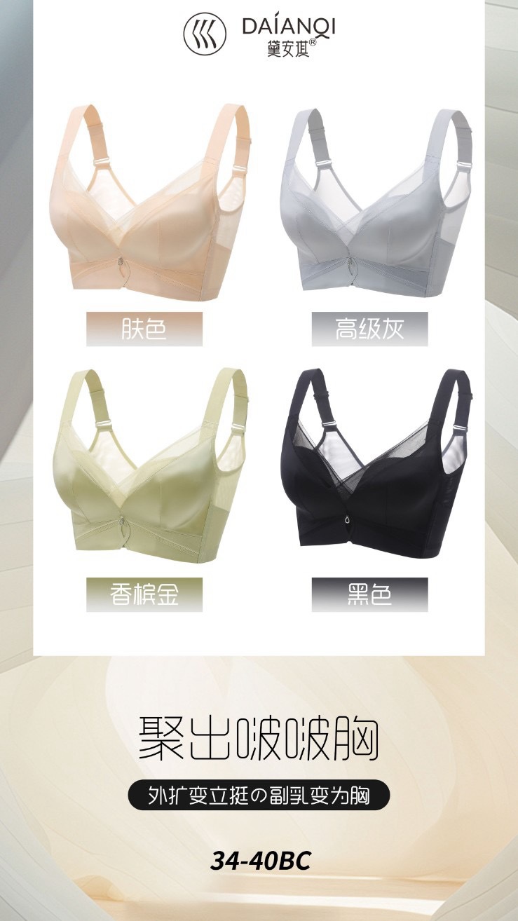 3399# 春夏新款 中薄大胸显小 BC通杯~高质缎面无钢圈薄文胸