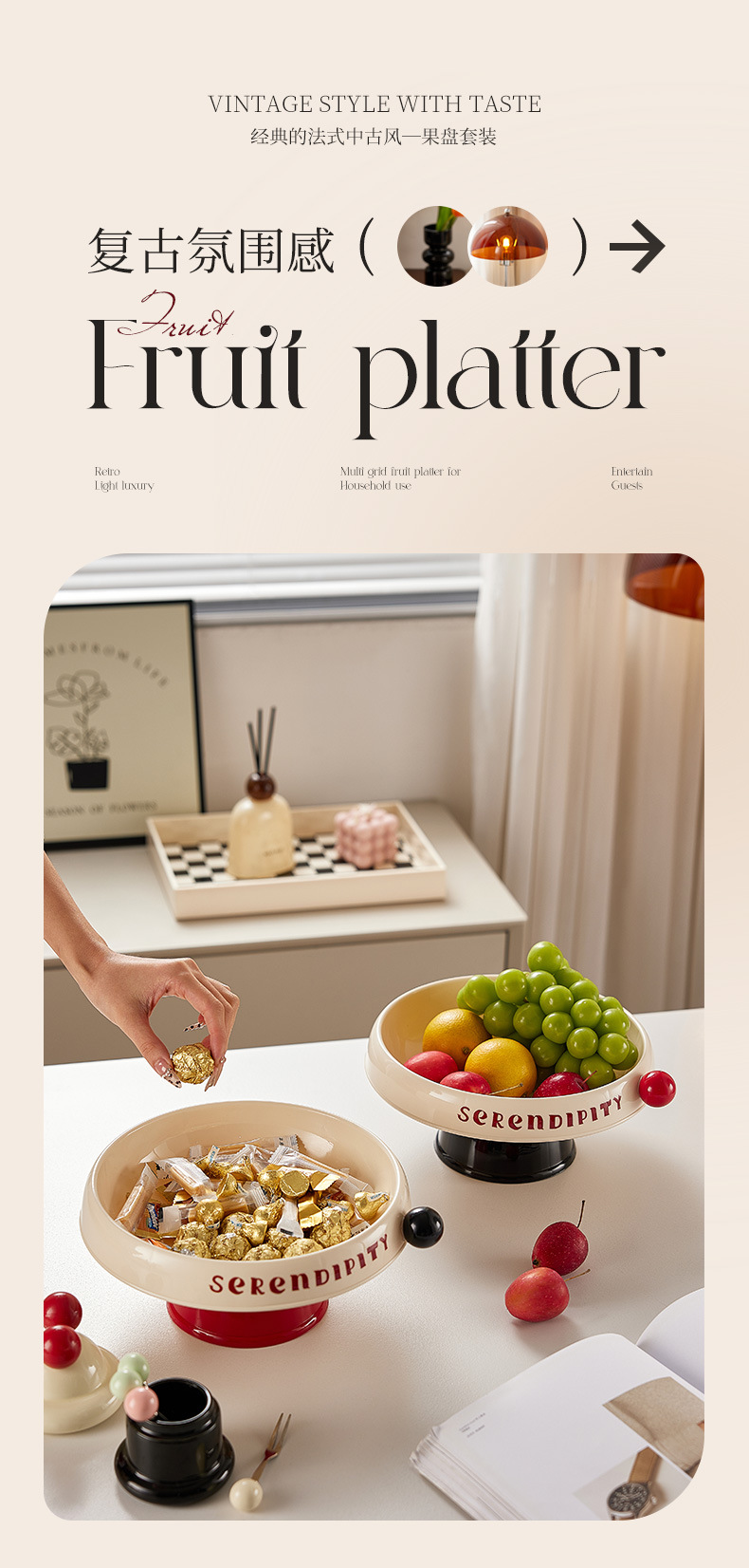 도파민 크림 키 큰 과일 플레이트 귀여운 새로운 스타일 거실 홈 커피 테이블 스낵 플레이트 건조 캔디 플레이트스토어 가기