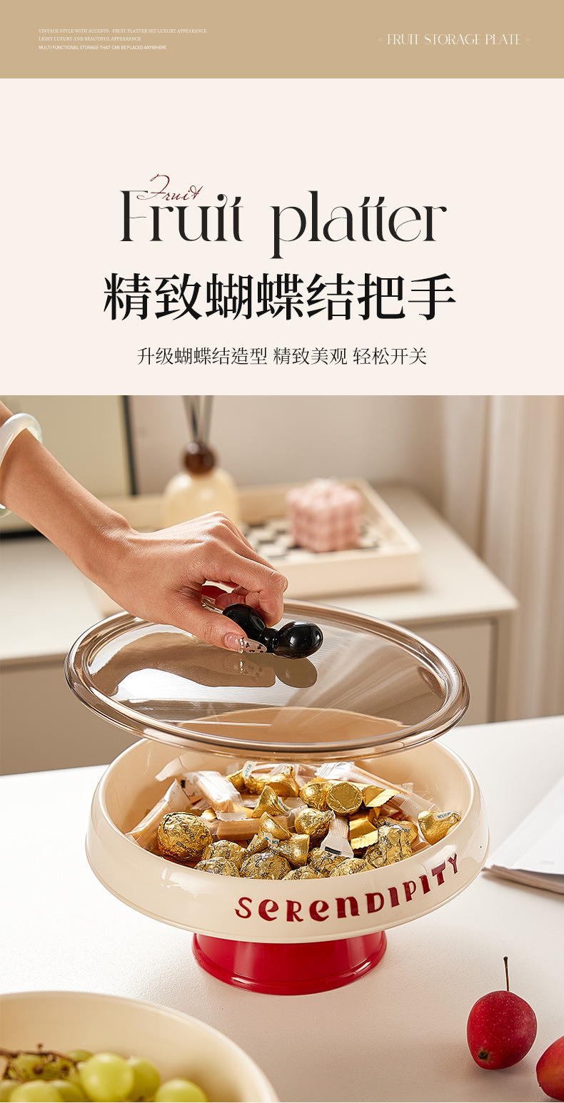 도파민 크림 키 큰 과일 플레이트 귀여운 새로운 스타일 거실 홈 커피 테이블 스낵 플레이트 건조 캔디 플레이트