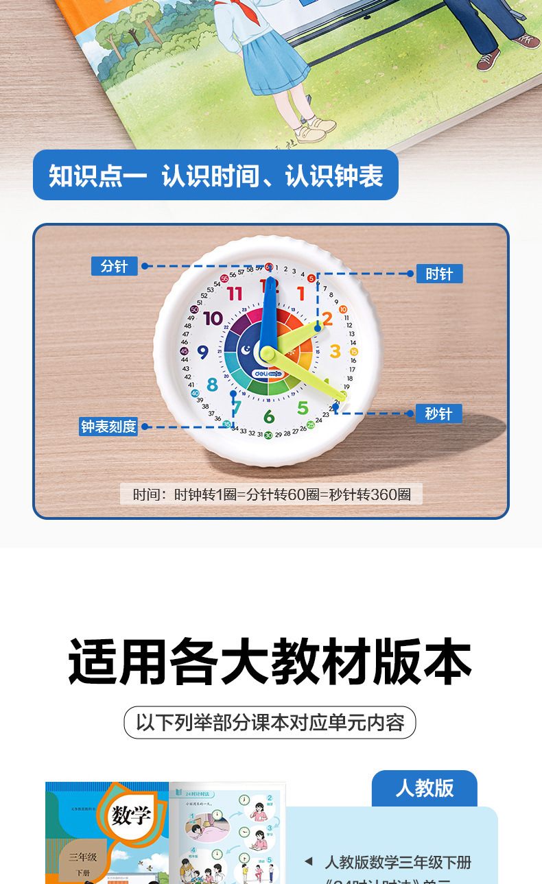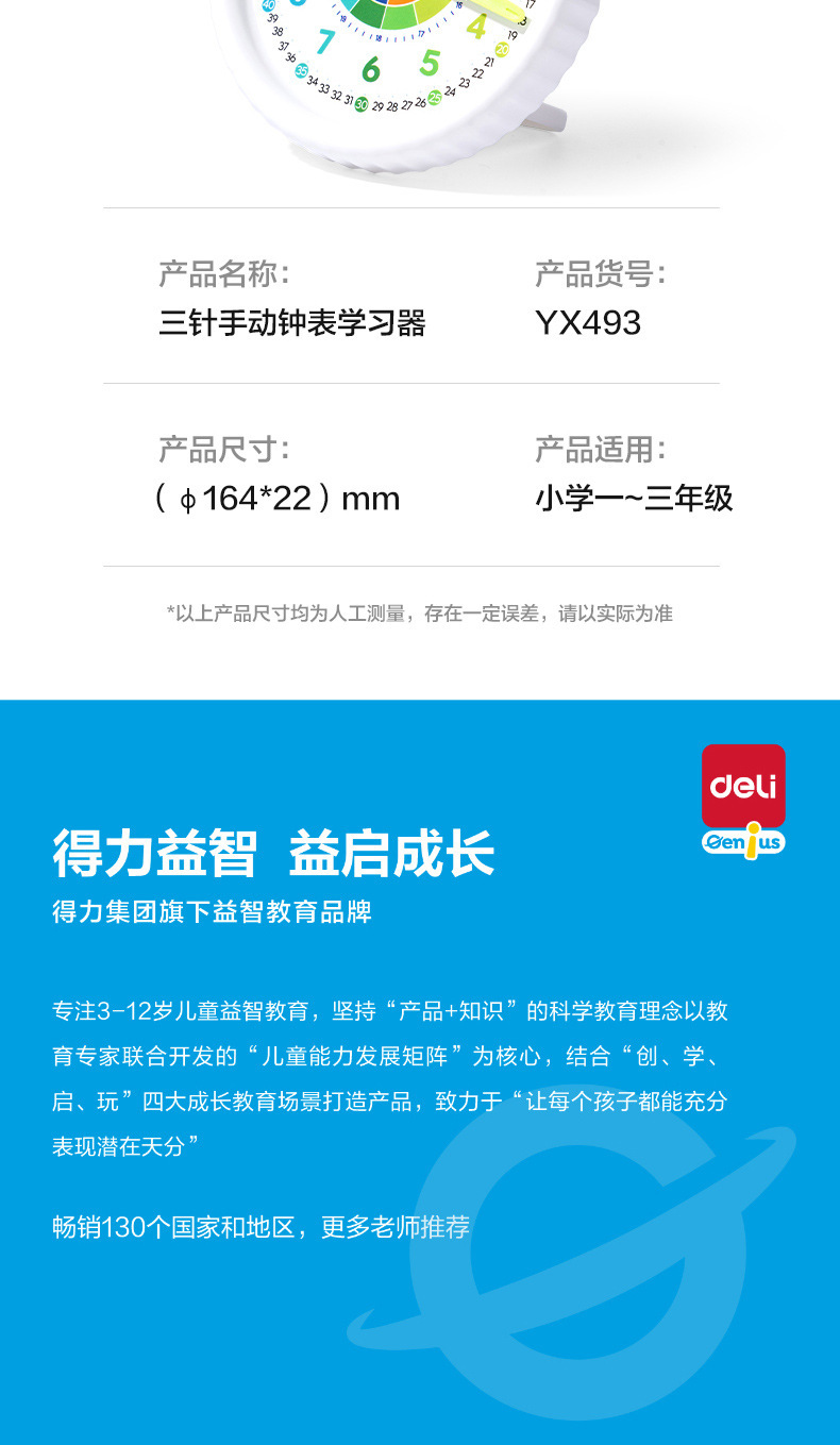 Deli YX493 3 핀 연결 시간 시계 학습자 학생 이해 시계 학습 도구 모델 이해스토어 가기