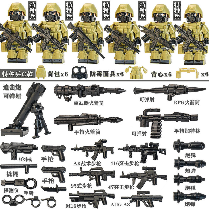 • 사막 특수부대 미니피겨 6개 + 무기 + 배낭