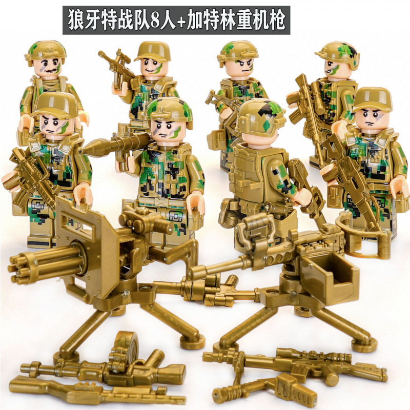 • 울프팡 특수부대 미니피겨 8개 + 개틀링 중무기