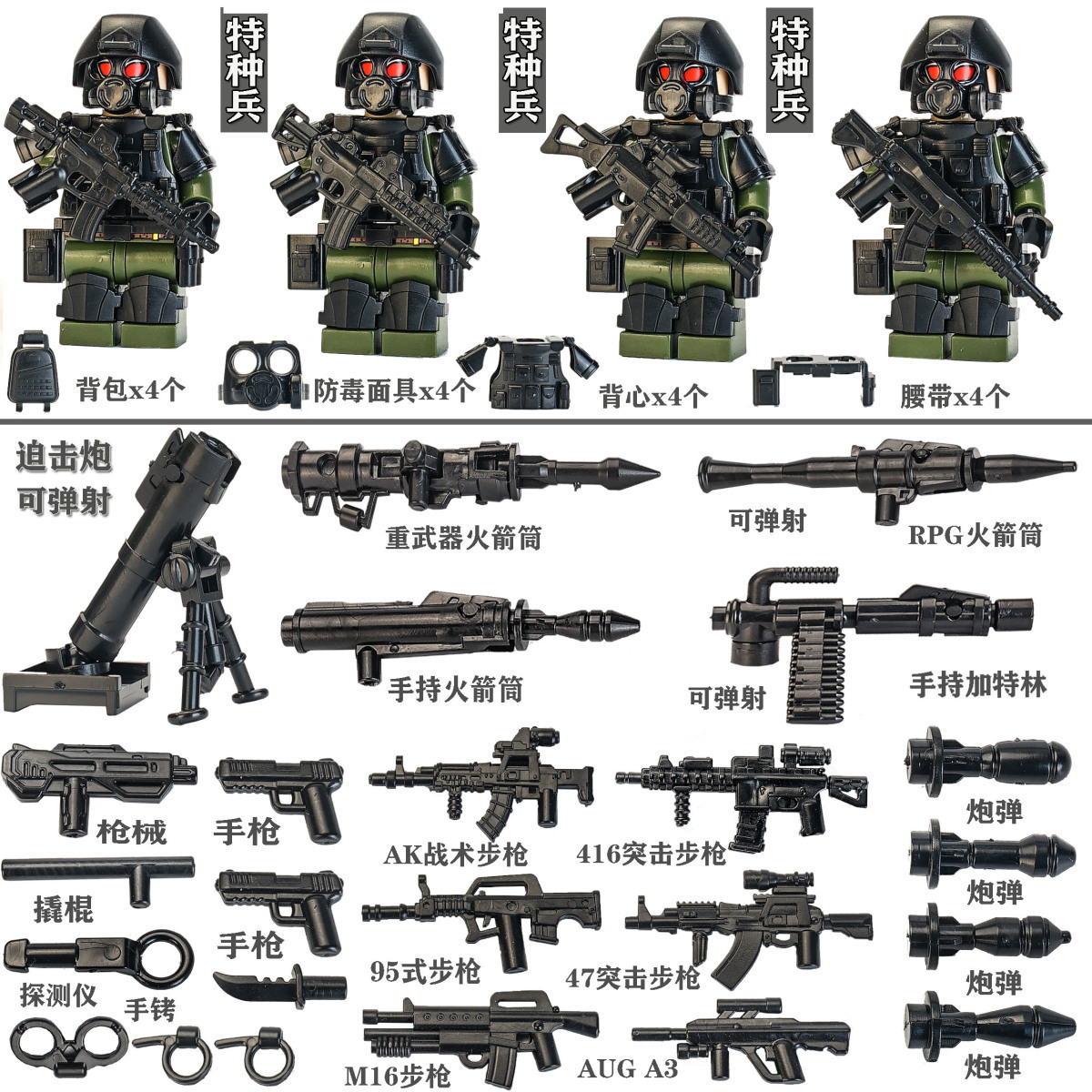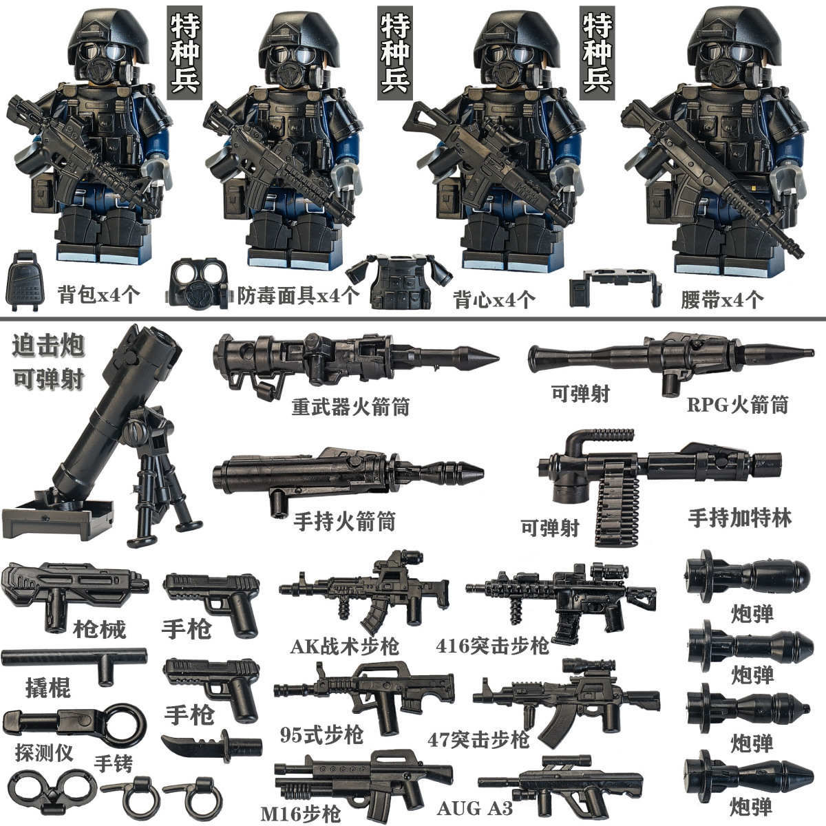 레고 군용 빌딩 블록 특수 부대 경찰 미니피규어 박격포 총기구 조립 장난감과 호환 가능