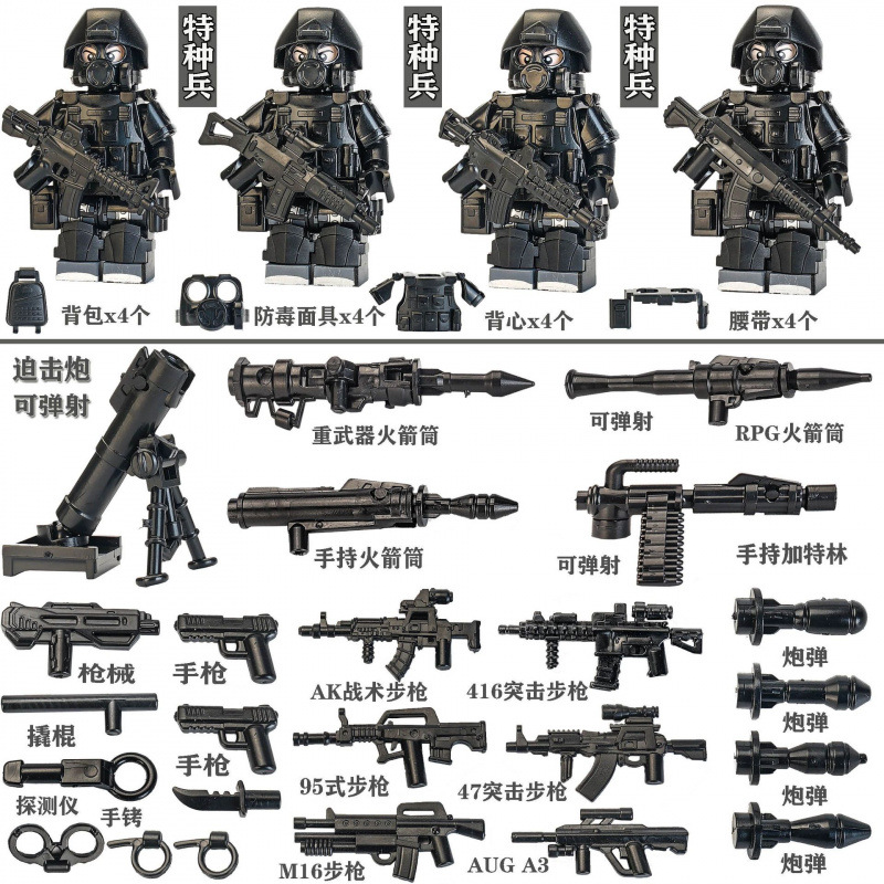 레고 군용 빌딩 블록 특수 부대 경찰 미니피규어 박격포 총기구 조립 장난감과 호환 가능스토어 가기