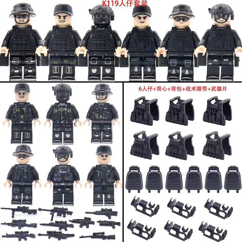 • 중장비 SWAT 미니피겨 6개 + 무기 + 배낭 119