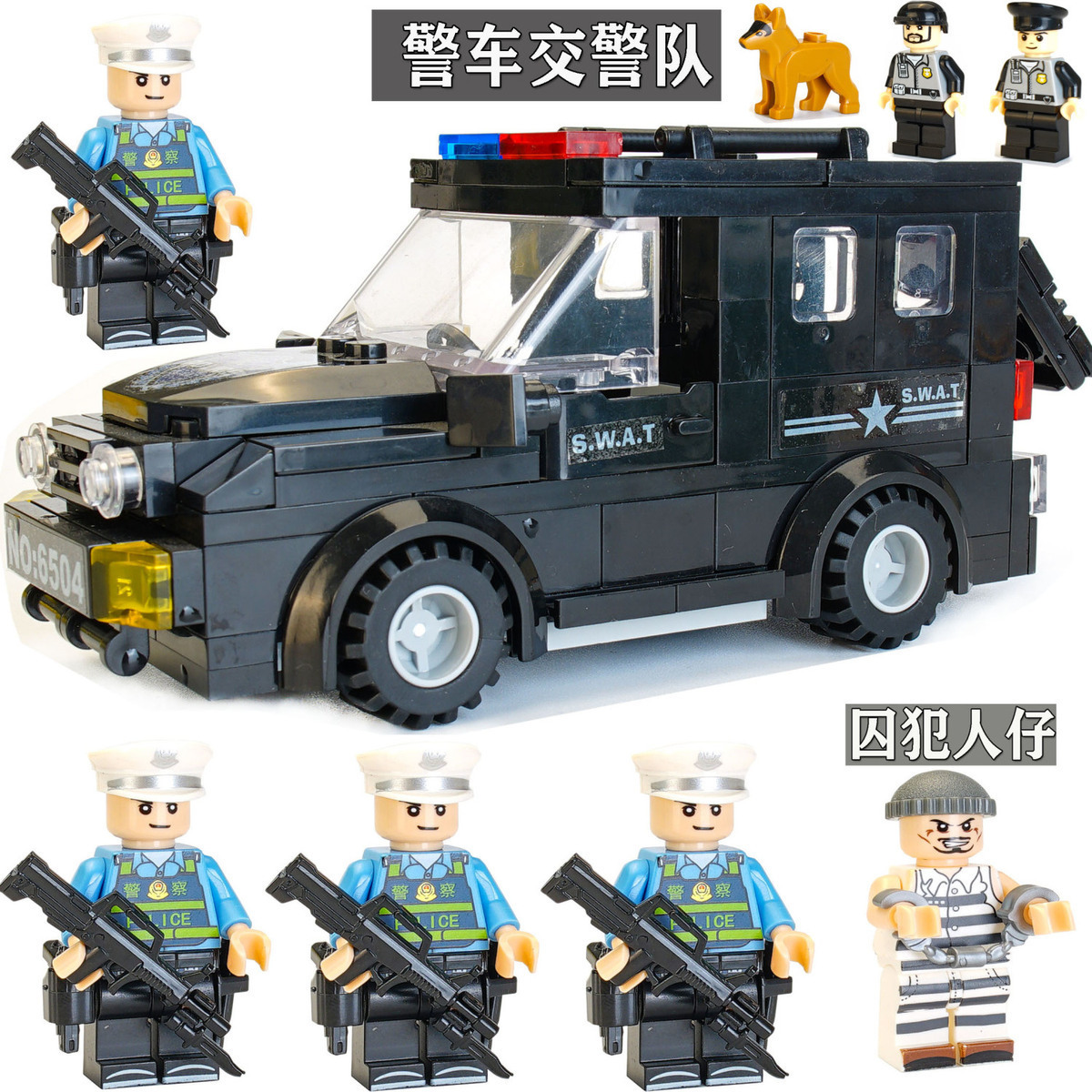 • 경찰차 SWAT 경찰 미니피겨 6개 + 죄수 1개 + 경찰견