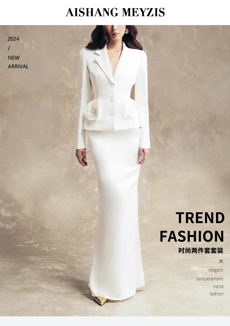 화이트 로얄 자매 우아한 패션 투피스 세트 여성 2025 봄과 가을 새로운 우아한 허리 세트 원피스 여성스토어 가기