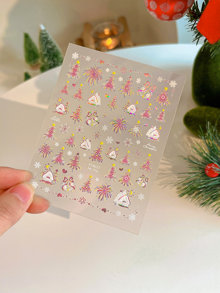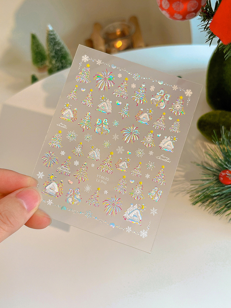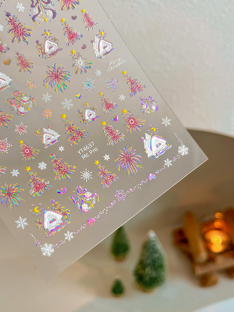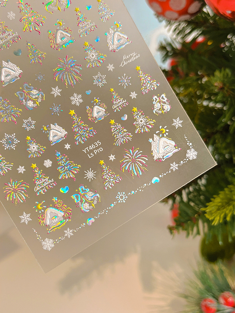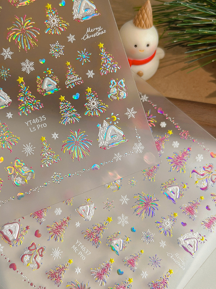 YITU 개미 그림 레이저 브론징 크리스마스 불꽃 놀이 예술 스티커 다채로운 플래시 접착 네일 장식 스티커 YT4637