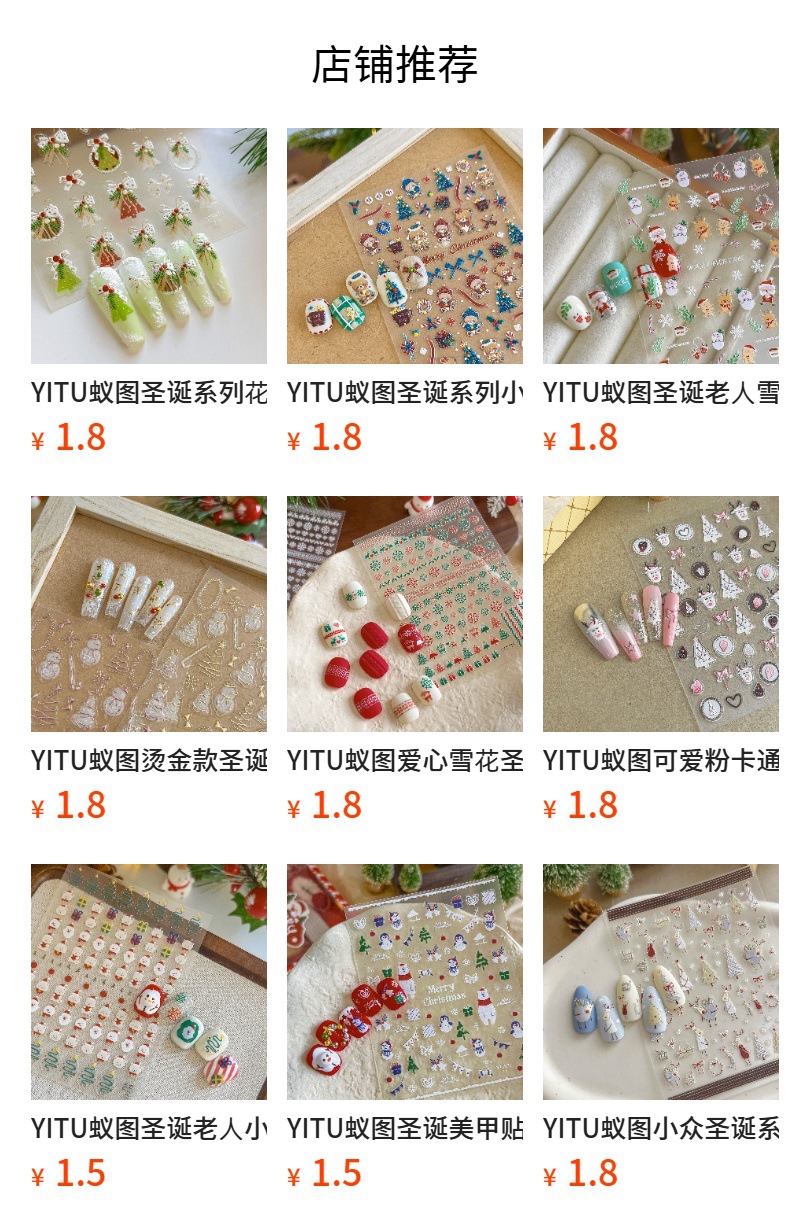 YITU 개미 그림 레이저 브론징 크리스마스 불꽃 놀이 예술 스티커 다채로운 플래시 접착 네일 장식 스티커 YT4637스토어 가기
