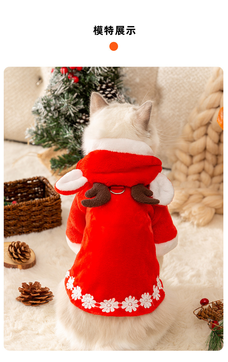 고양이 옷 크리스마스 시리즈 뿔 후드 케이프 가을과 겨울 따뜻한 두 다리 옷 고양이 강아지 애완 동물 옷스토어 가기