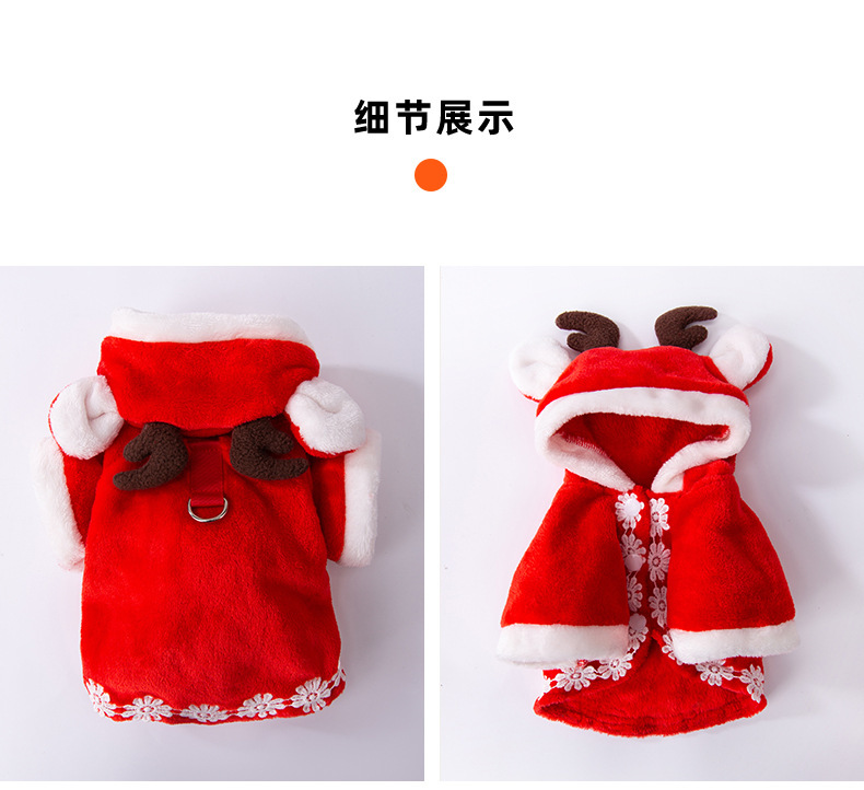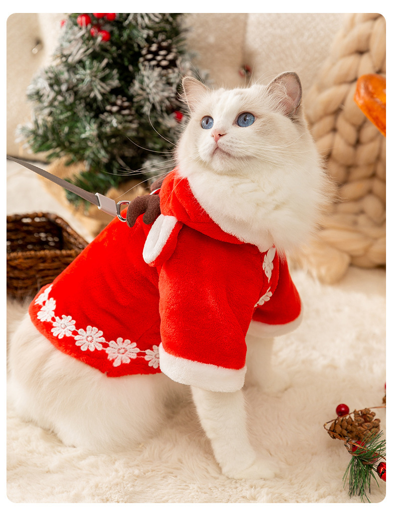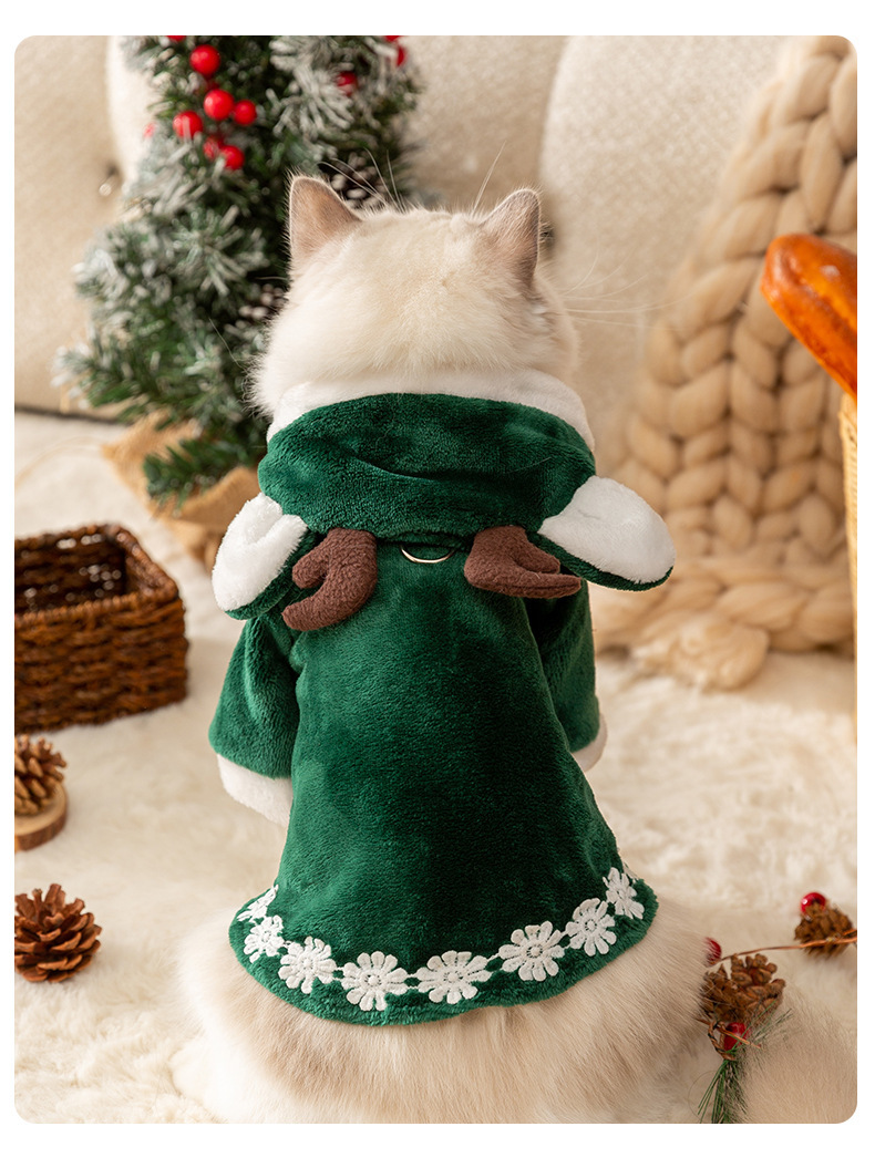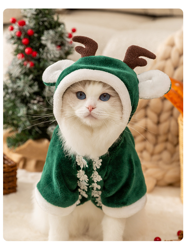 고양이 옷 크리스마스 시리즈 뿔 후드 케이프 가을과 겨울 따뜻한 두 다리 옷 고양이 강아지 애완 동물 옷